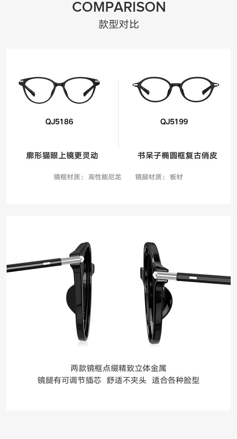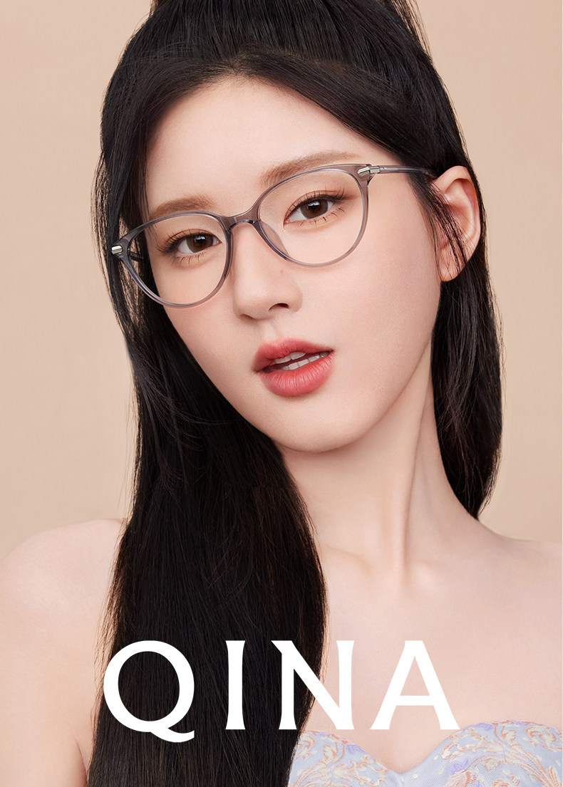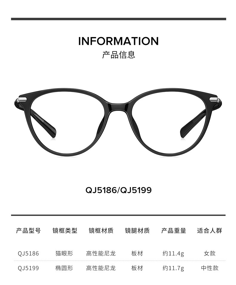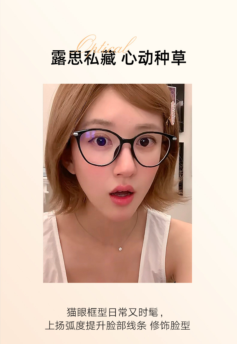 QINA Qina Zhao Lusi's same style cat eye frame small frame plain female black frame glasses myopic male QJ5186