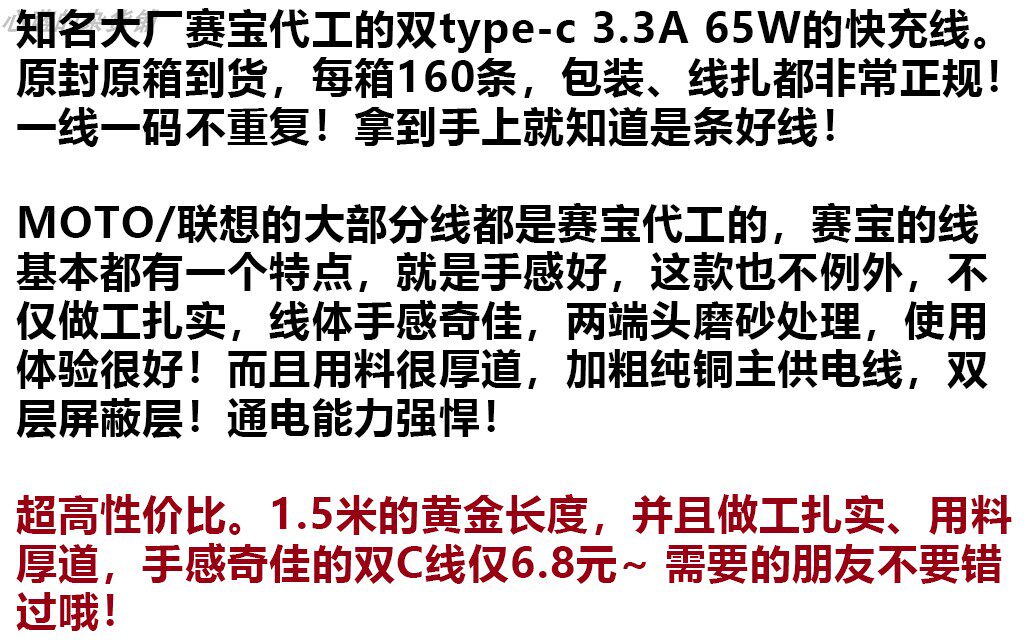 Dachang Saiba 1.5m Dual Type-C Pd Fast Charging Cable 65W 60W 3A Data Cable Suitable for iPhone 15 Android Phones, Tablets, Laptops, iPad /Macbook Universal Charging Cable