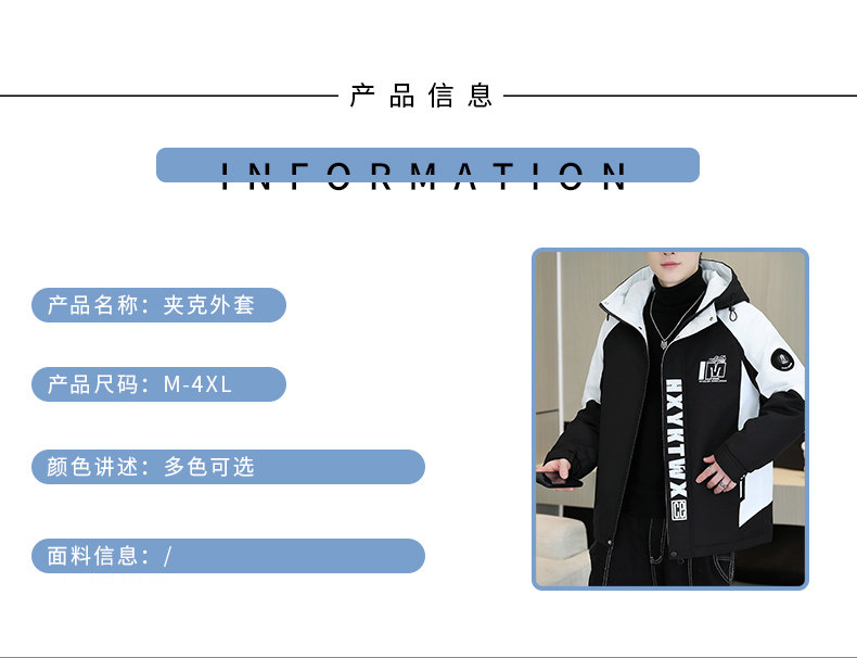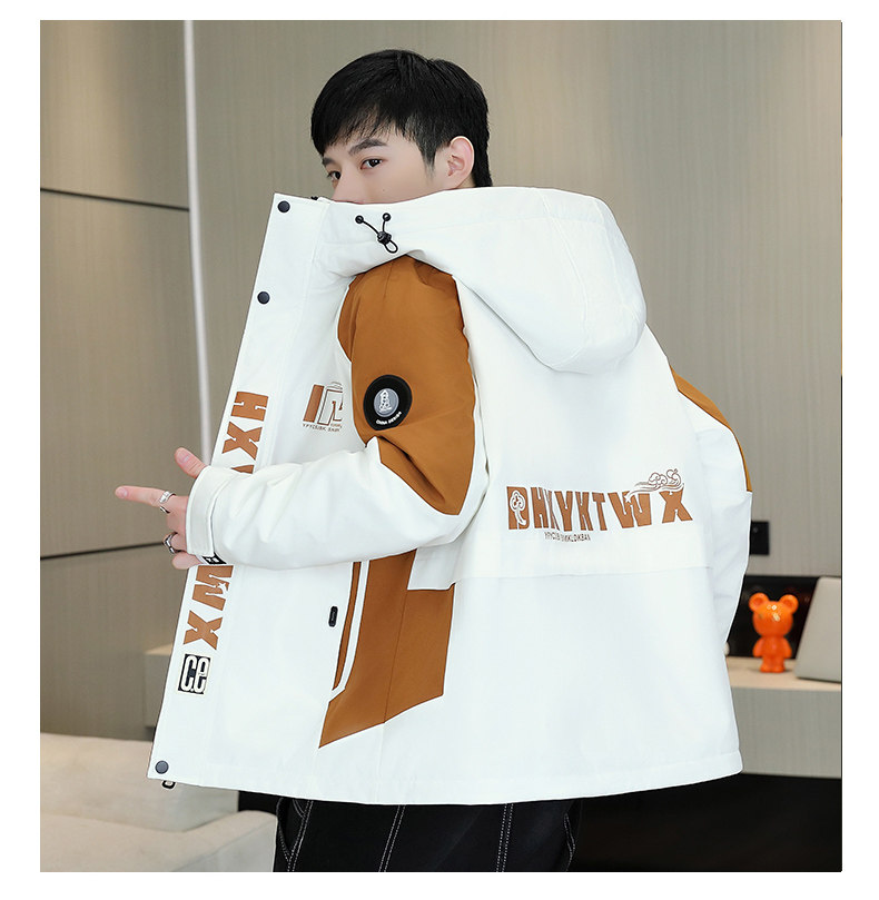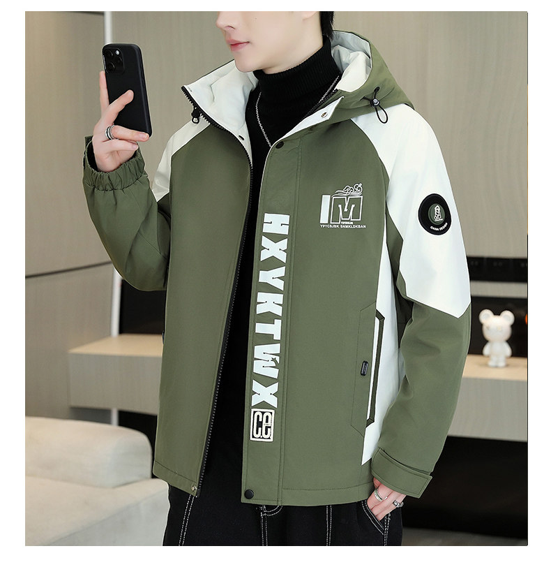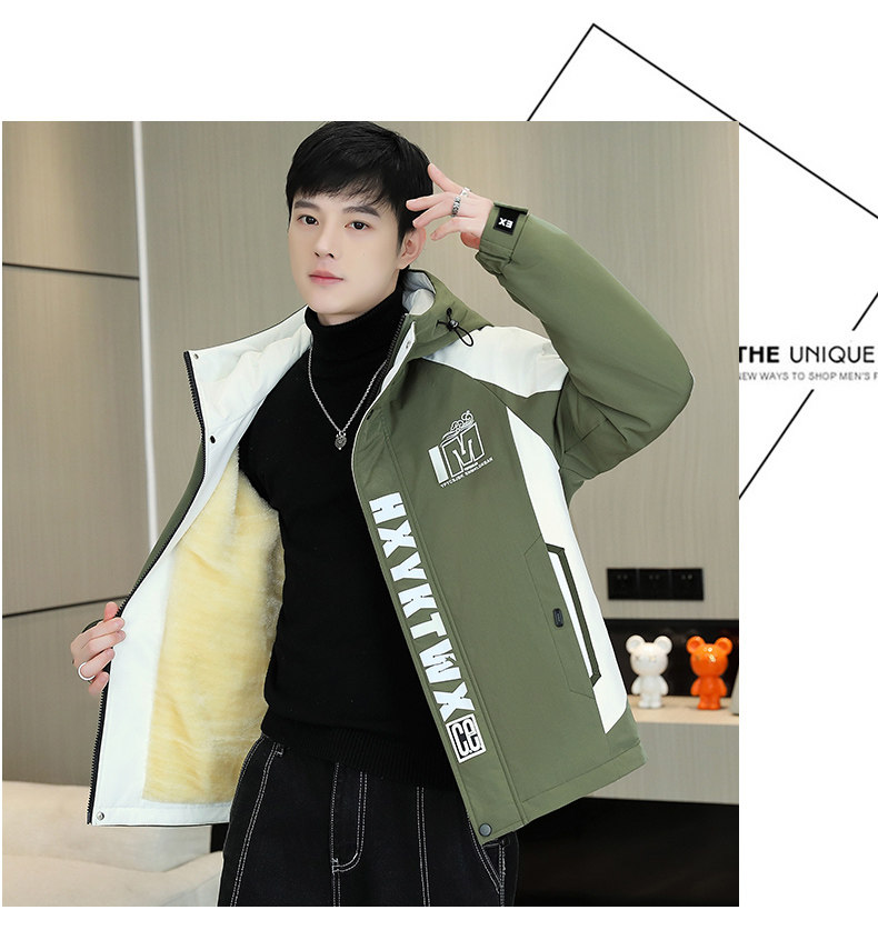 Men's Work Jacket, Autumn and Winter Style, Fleece-Lined and Thickened, Trendy Brand, Loose Hooded Coat, Youth Warm and Windproof Cotton Jacket