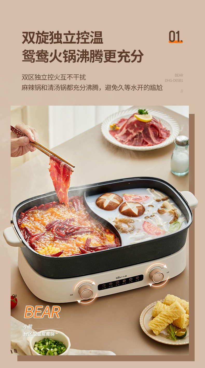 Genuine DHG-D65B1 Yuanyang hot pot electric hot pot split 6-liter multi-functional cooking pot barbecue machine