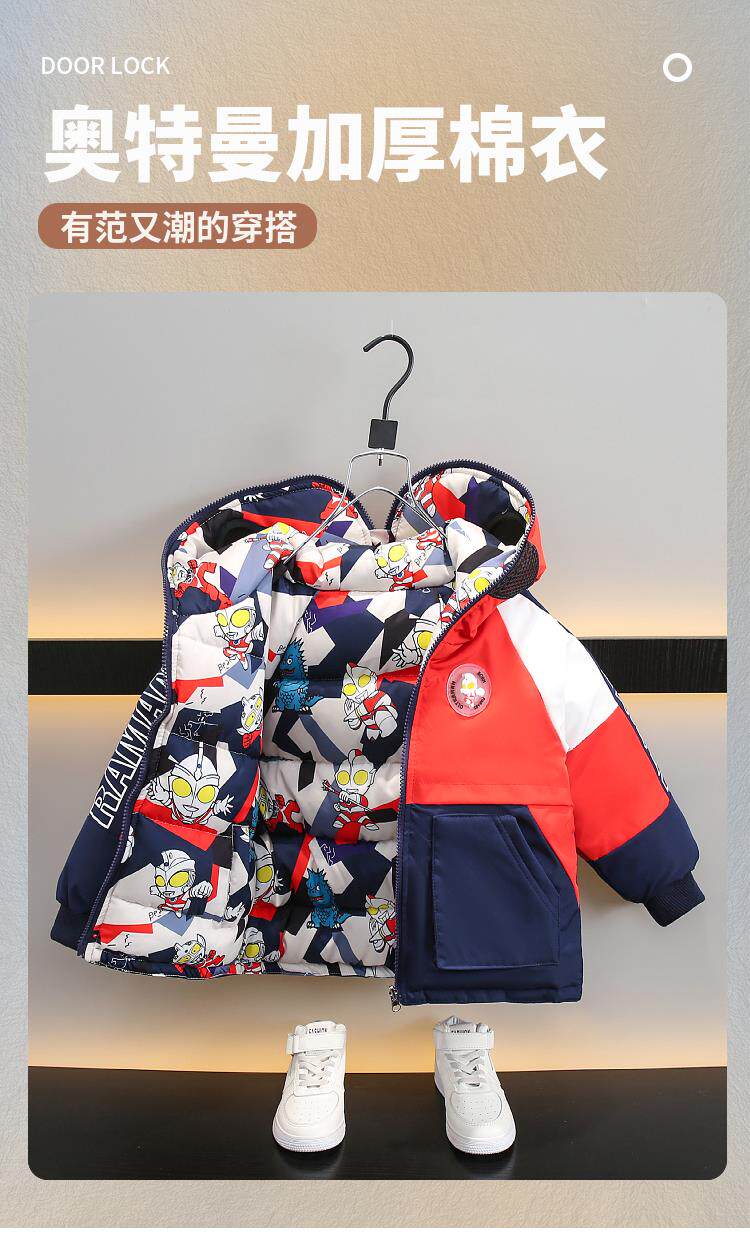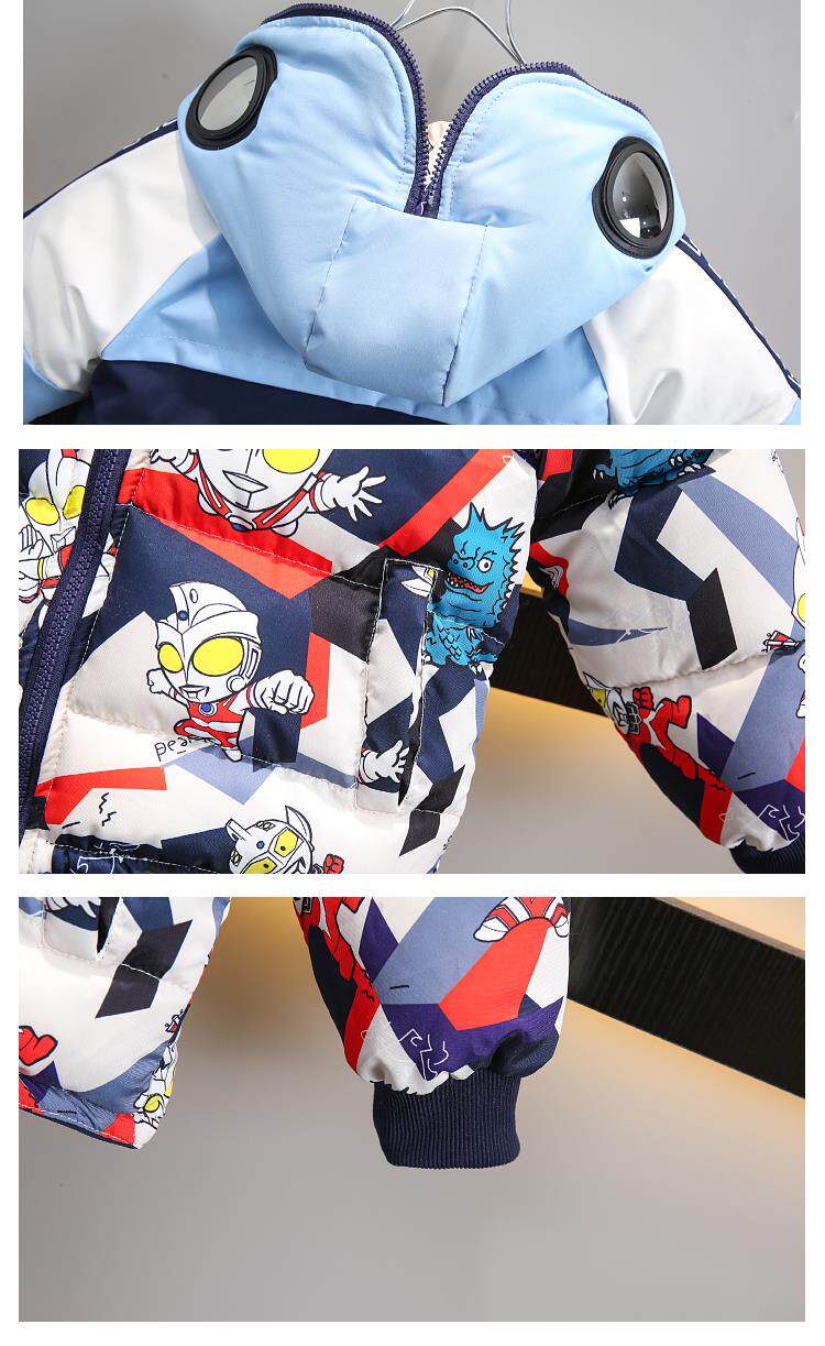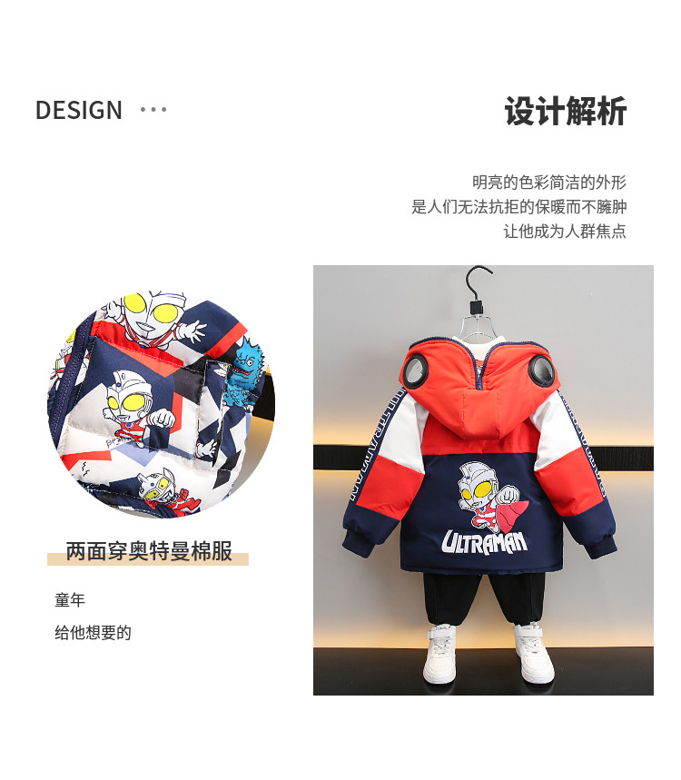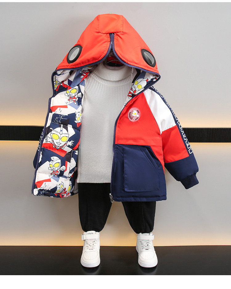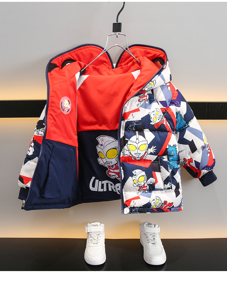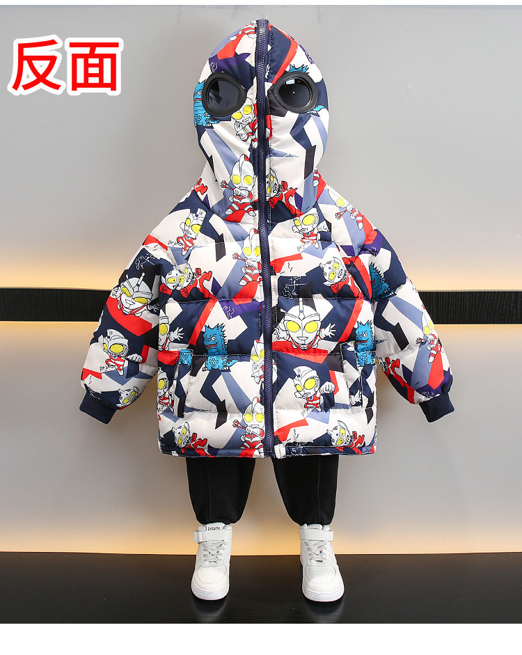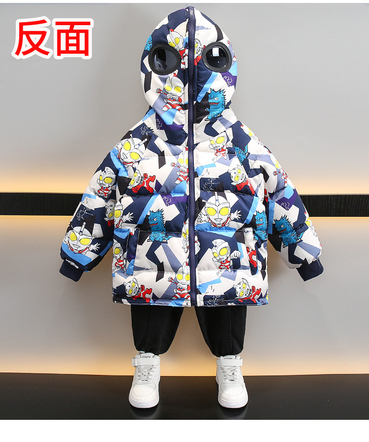 Dhwa Uk Co-Branded Kidsren's Reversible Warm Cotton Jacket 2025 New Boys' Ultraman down Cotton Jacket Winter
