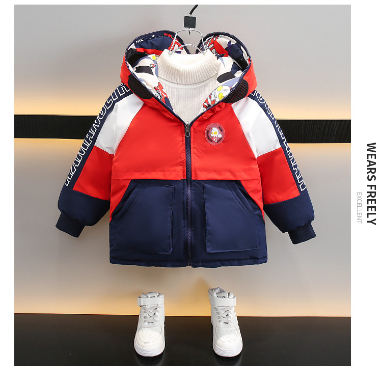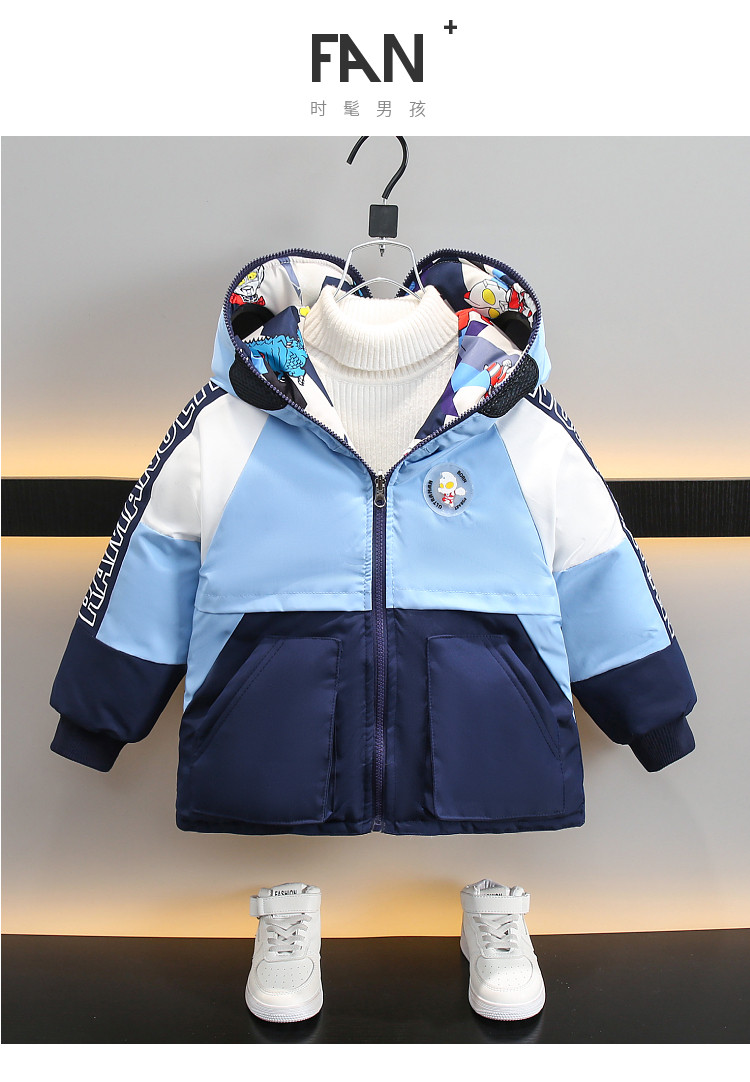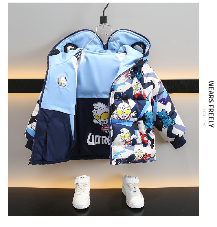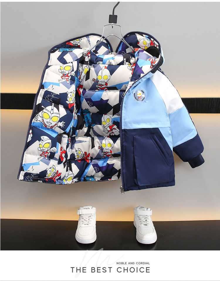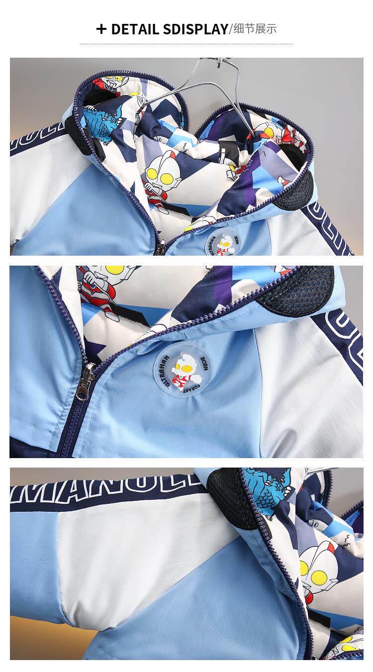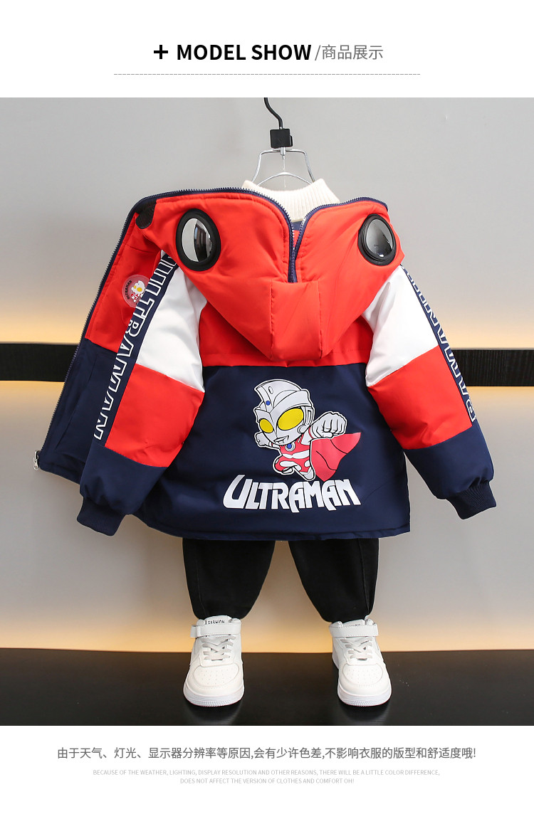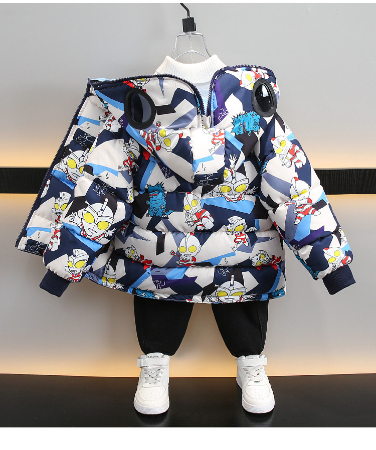 Dhwa Uk Co-Branded Kidsren's Reversible Warm Cotton Jacket 2025 New Boys' Ultraman down Cotton Jacket Winter