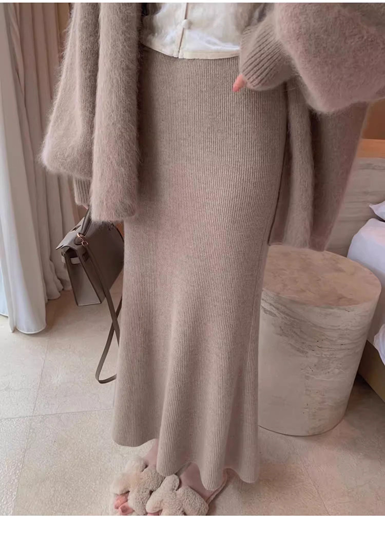 French Style Gentle Cashmere Knitted Skirt for Women, Autumn and Winter Long Skirt, Fishtail Skirt, Elegant High-Waisted Slimming Hip-Hugging Skirt