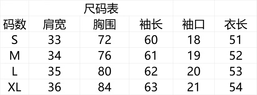 China(cm) 72-76 76-81 81-87 87-93 93-98