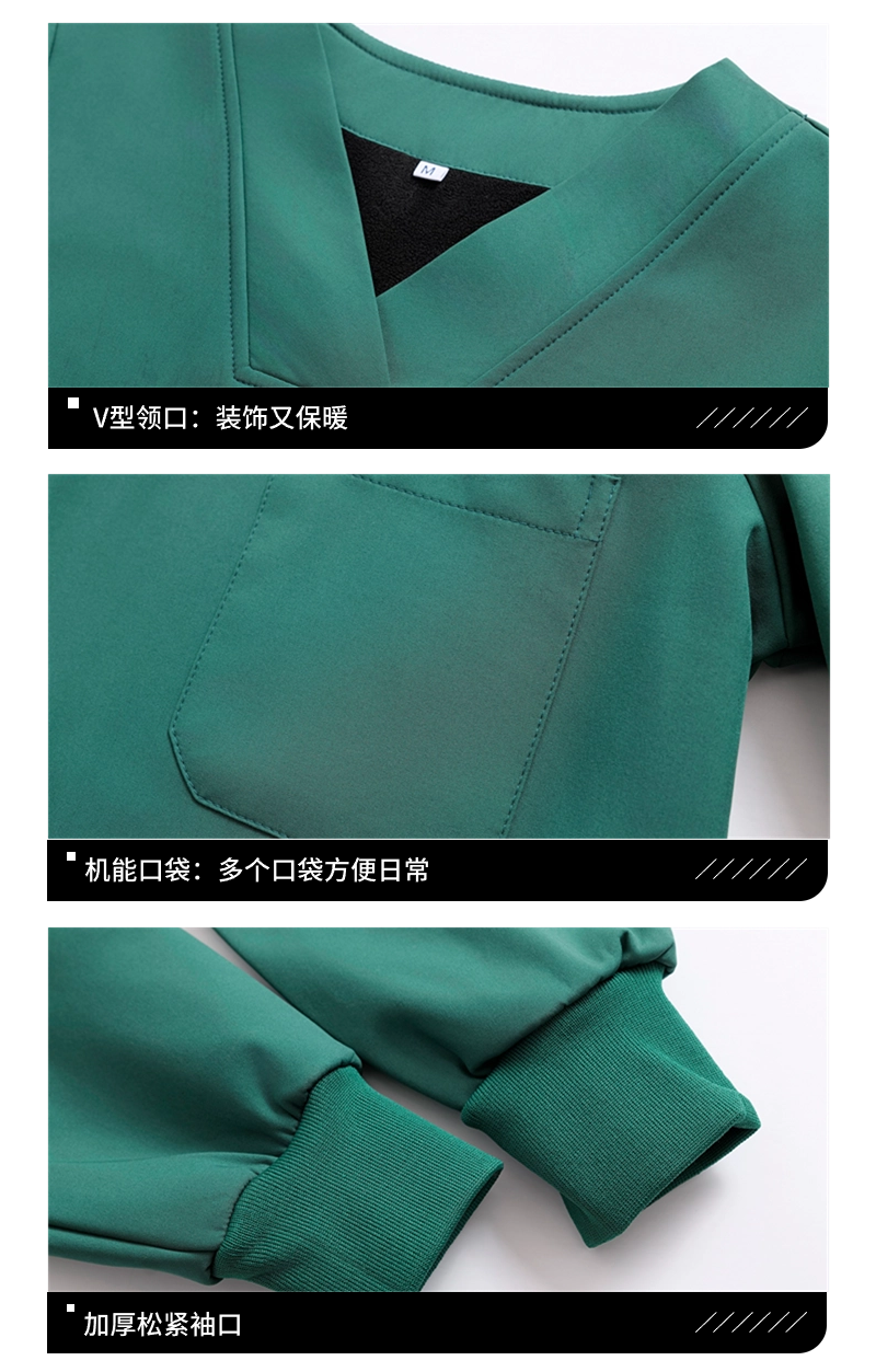 Fleece-Lined Scrub Suit for Women, Long-Sleeved, Thickened, Warm, for Dental, Oral, Pet Hospital, Scrub Uniform, Surgical Workwear, Winter