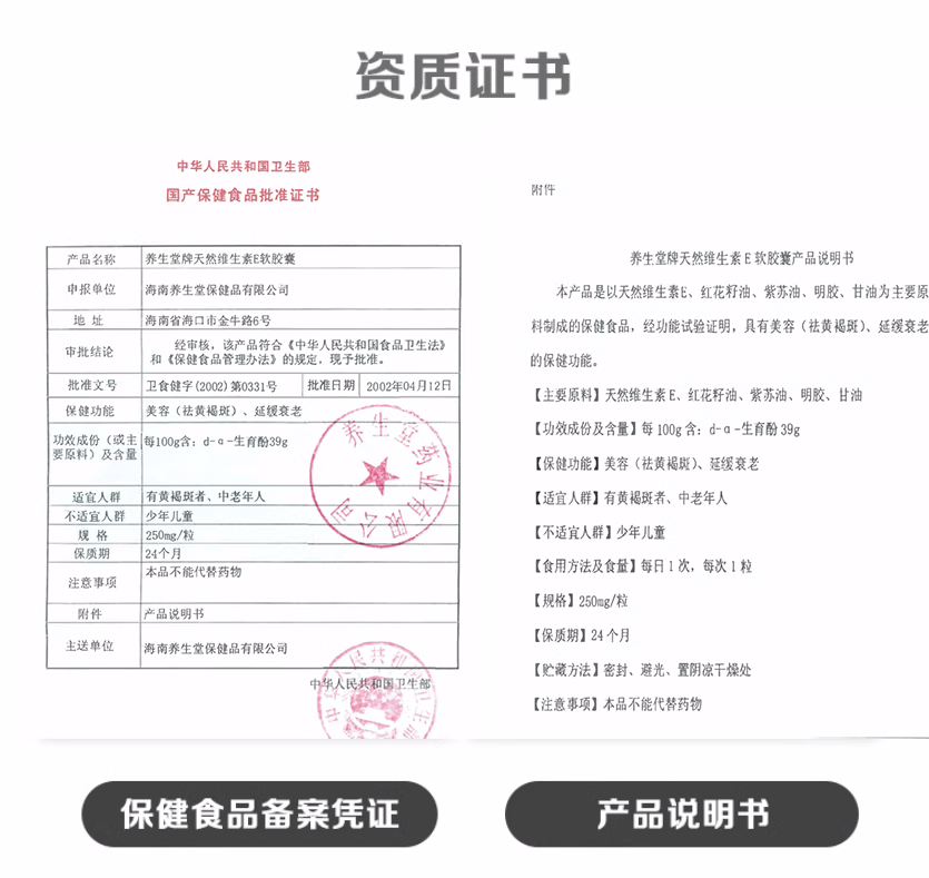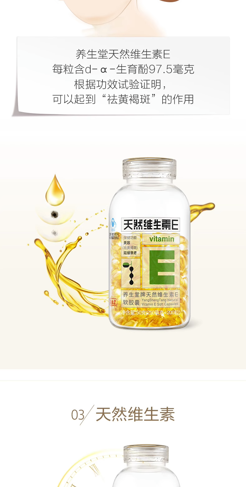 Yangshengtang Natural Vitamin E Soft Capsules for Adults, Men and Women, for Internal and External Use, to Apply on the Face to Supplement Vitamin E, Genuine Product