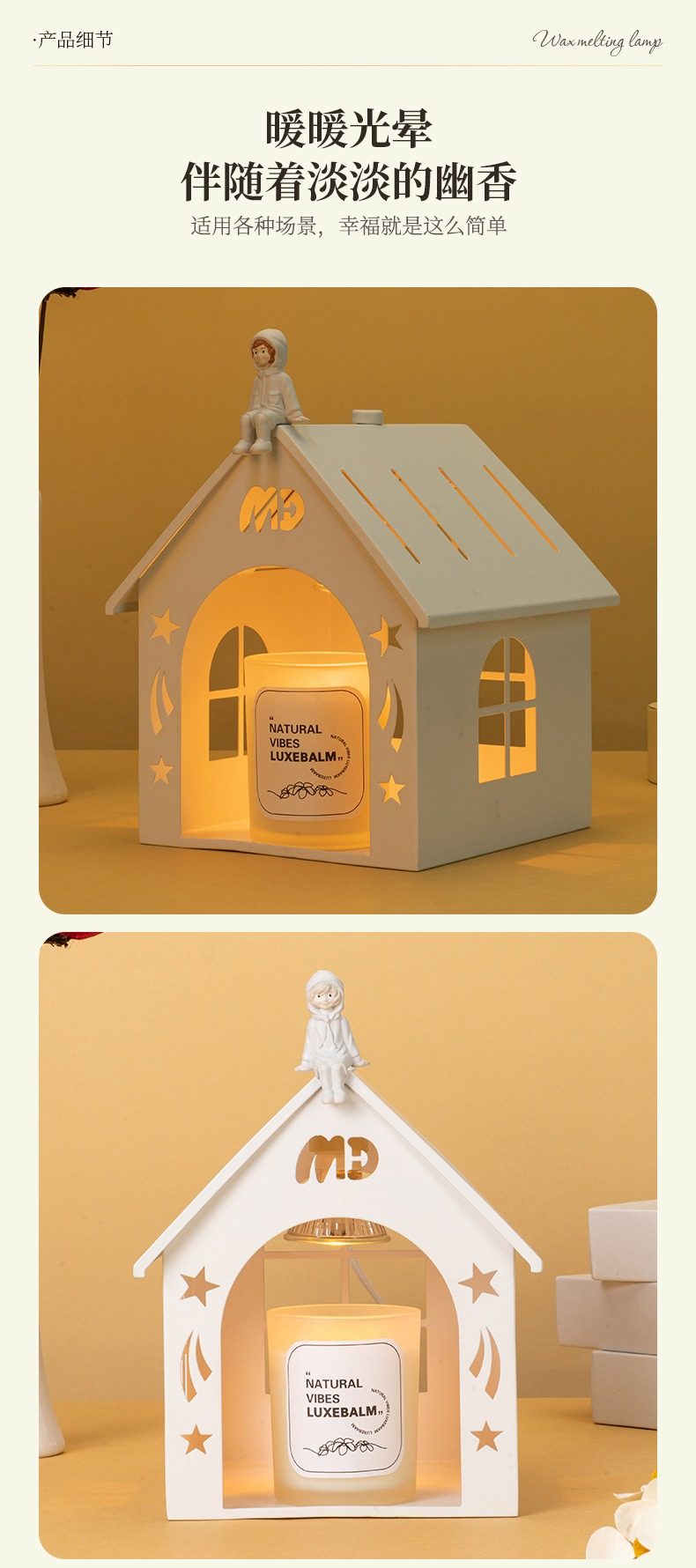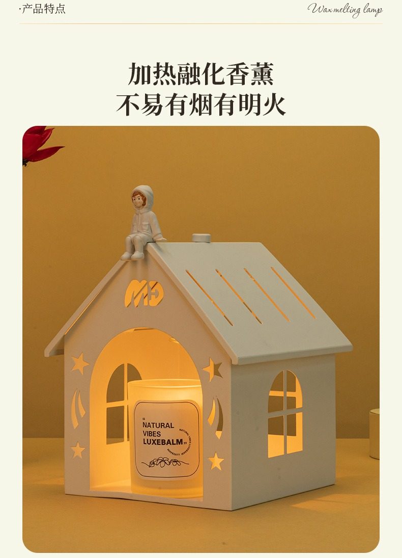 Small house melted wax lamp melted candle lamp fireless aromatherapy table lamp bedroom bedside lamp candle heater atmosphere night light