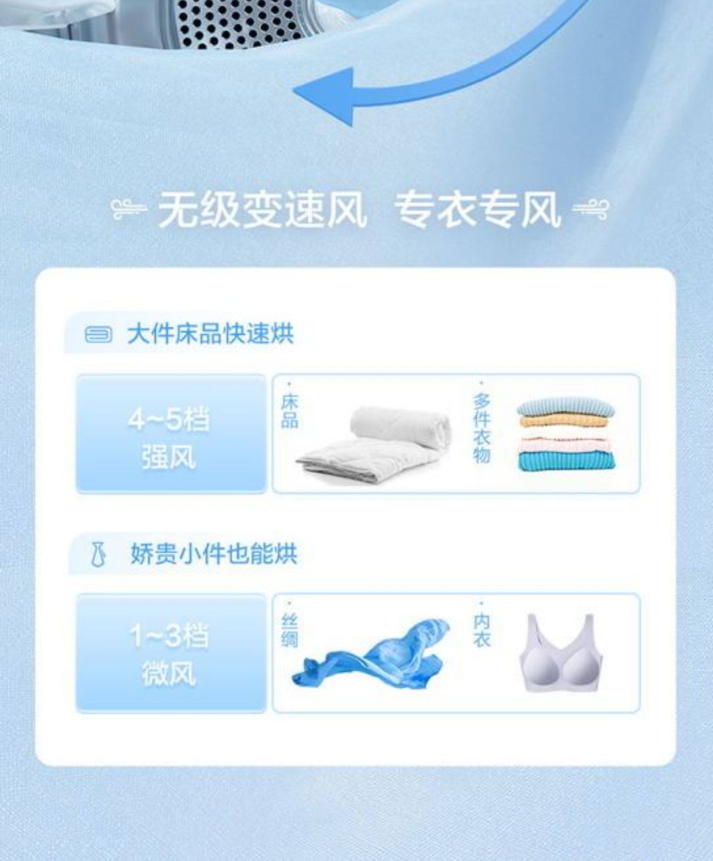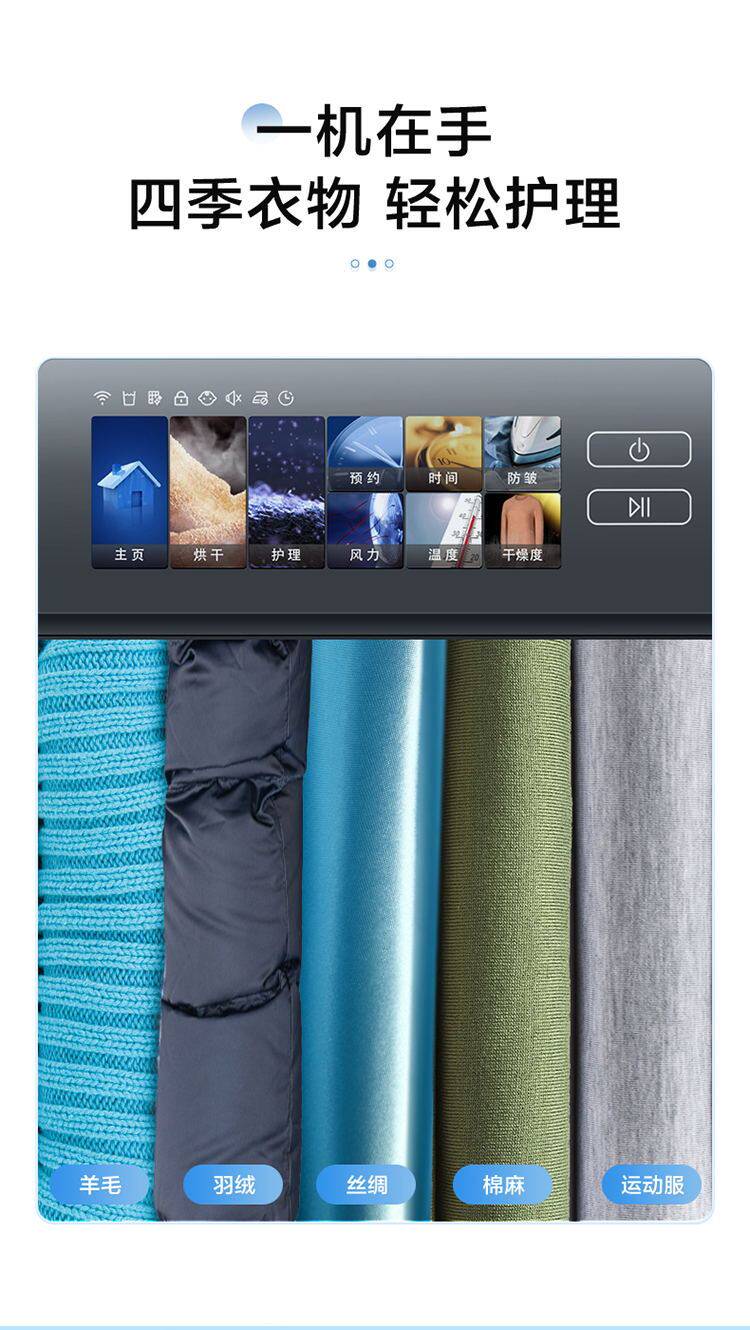 Drying Program One-Click Smart Drying, Large Items, Quick Drying, Blankets, Shirts, Bath Towels, Down, Night Drying, Underwear, Children's Clothing, Sportswear, Cotton and Linen, Chemical Fiber, Sterilization and Mite Removal