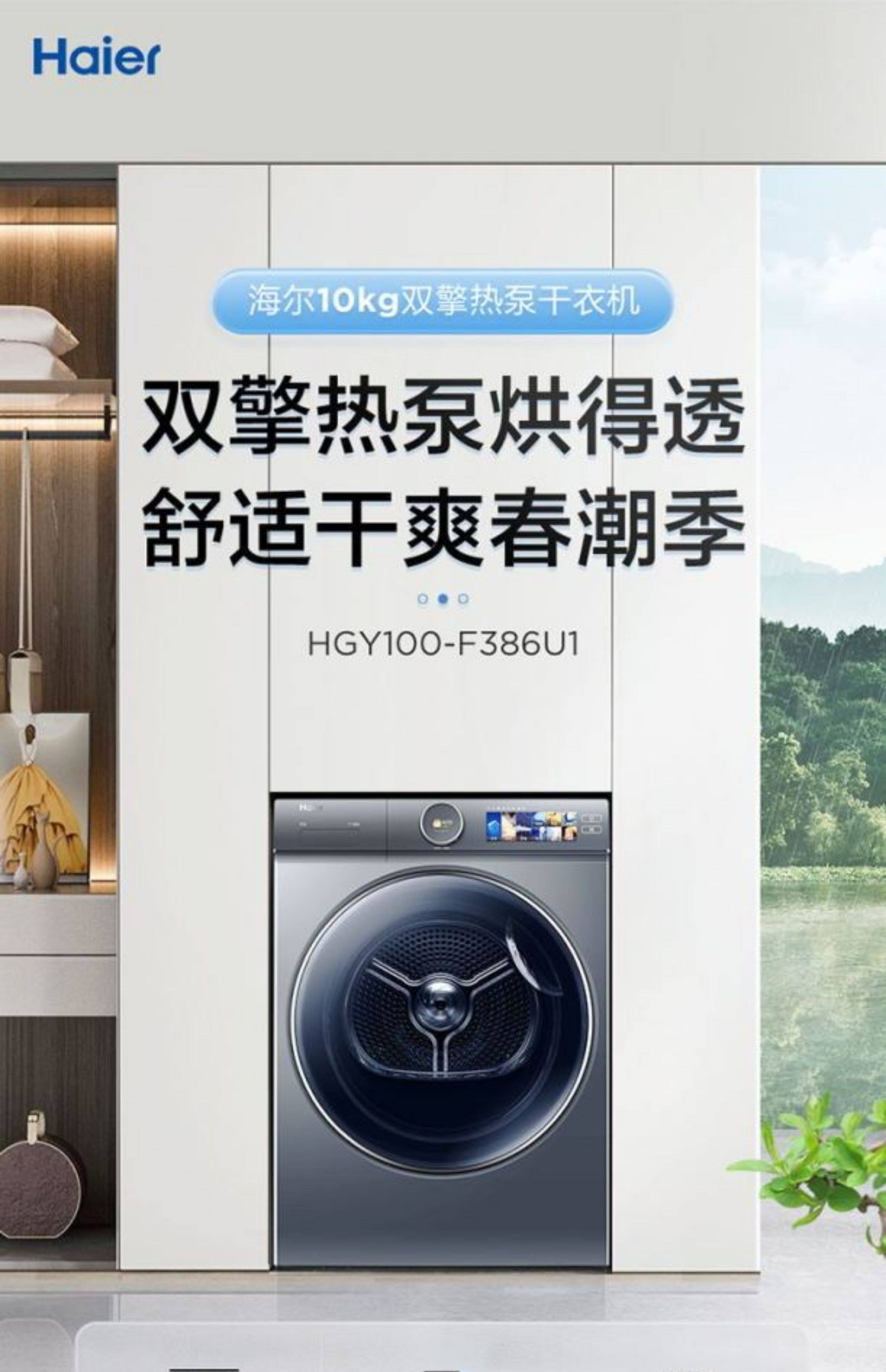 Haier 386 Dryer 10kg Household Dual-Engine Heat Pump Fully Automatic Tumble Dryer Hgy100-F386U1