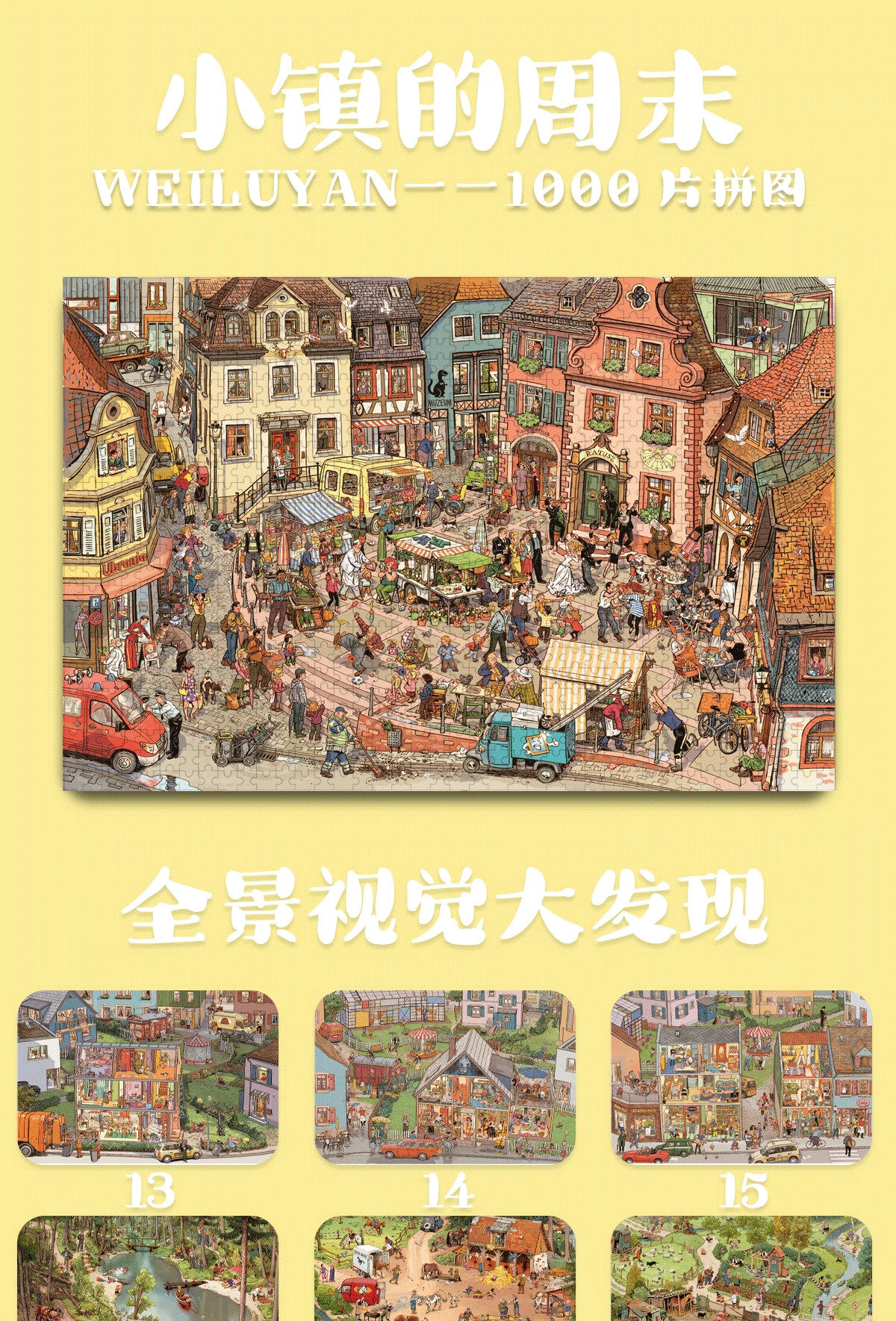 Panoramic Vision Discovery Puzzle Town Weekend Puzzle 1000 Pieces Wooden Wedding Big Party so Busy Town