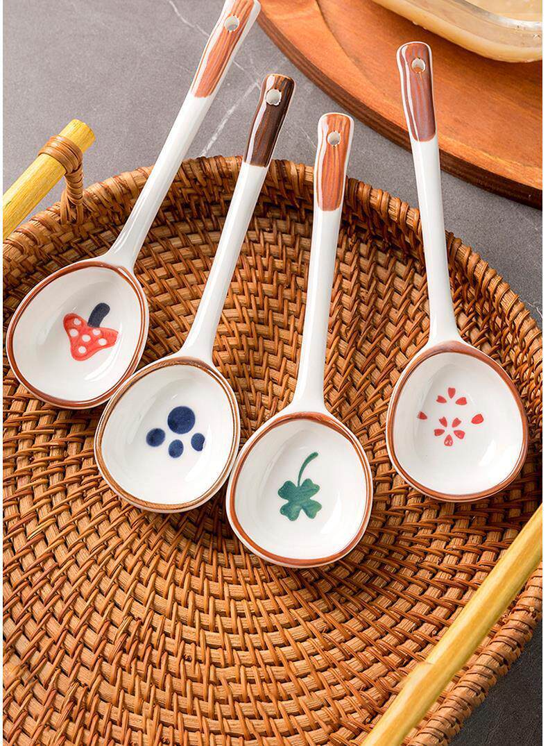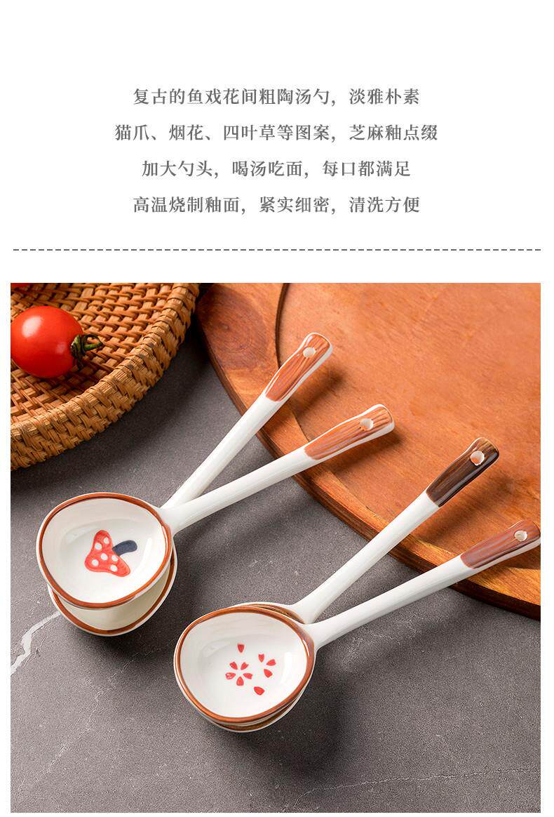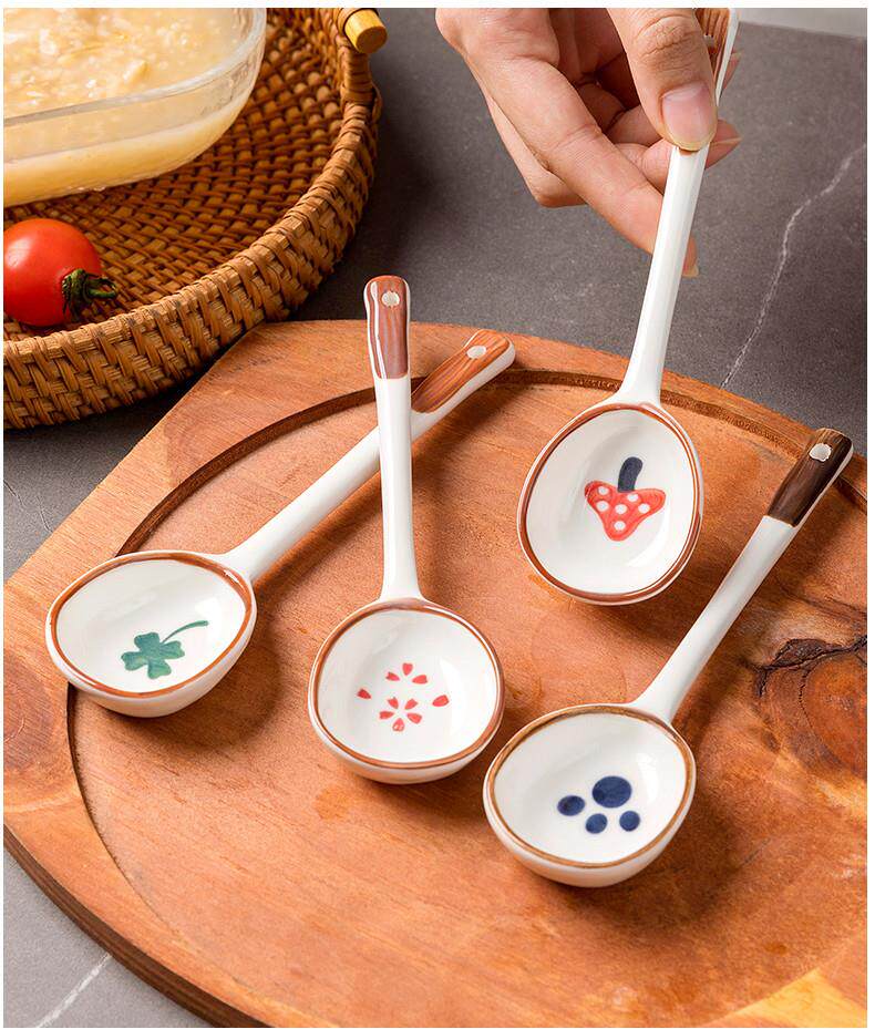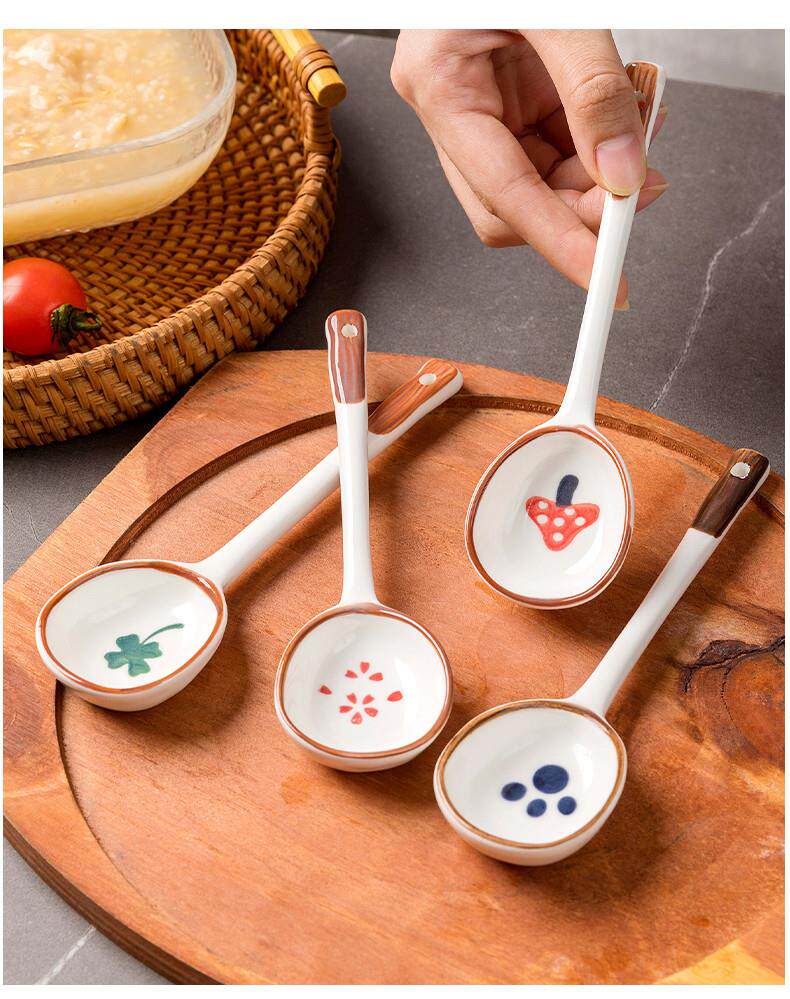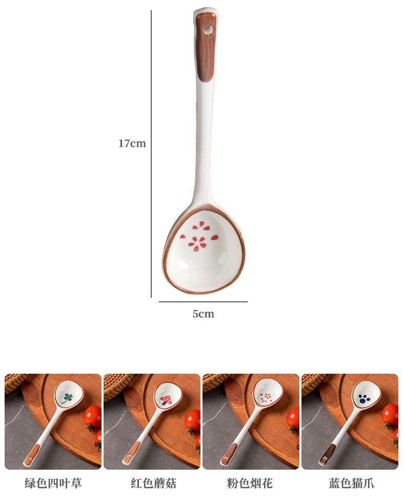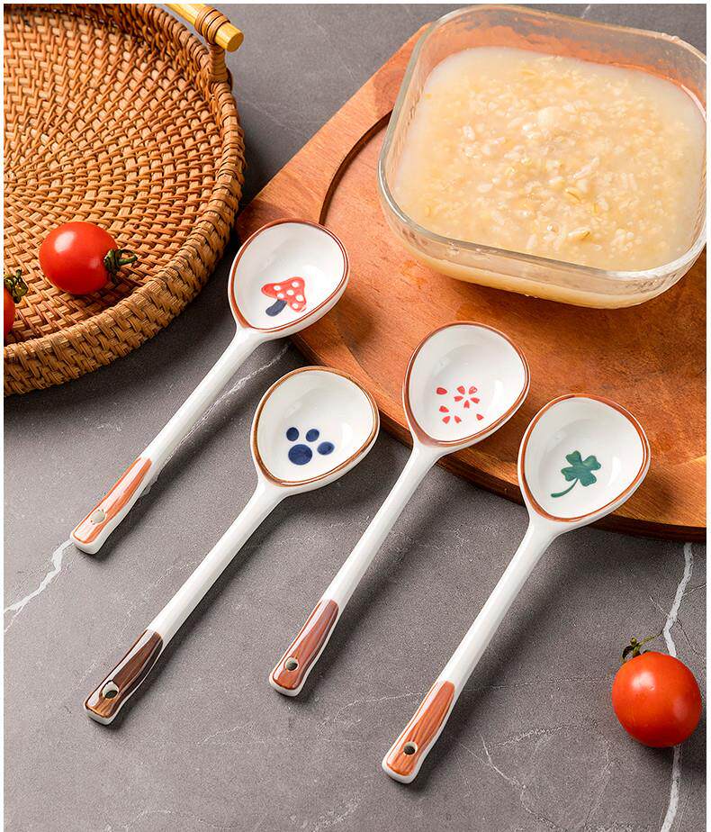 Internet celebrity ceramic long-handled spoon ins creative household rice spoon spoon dessert drinking spoon eating watermelon hand-painted tableware