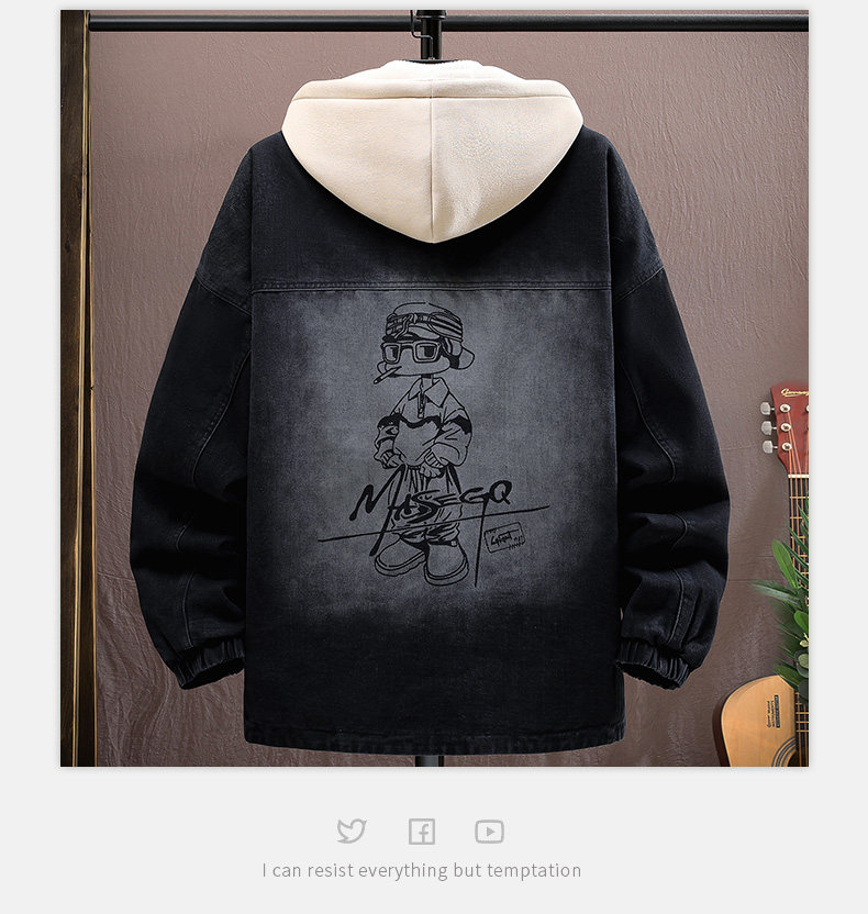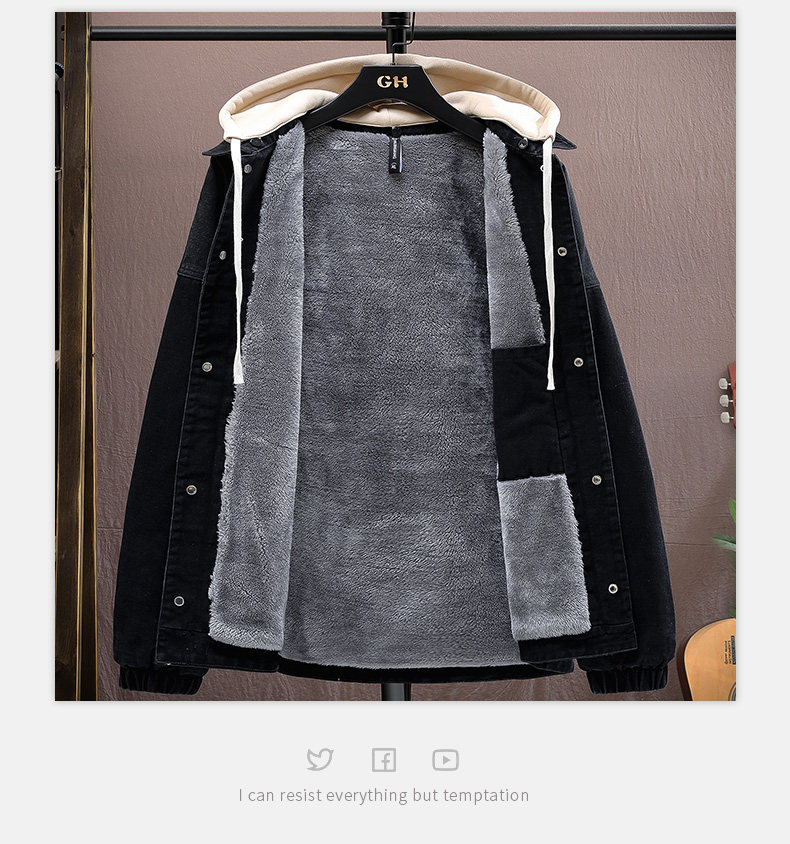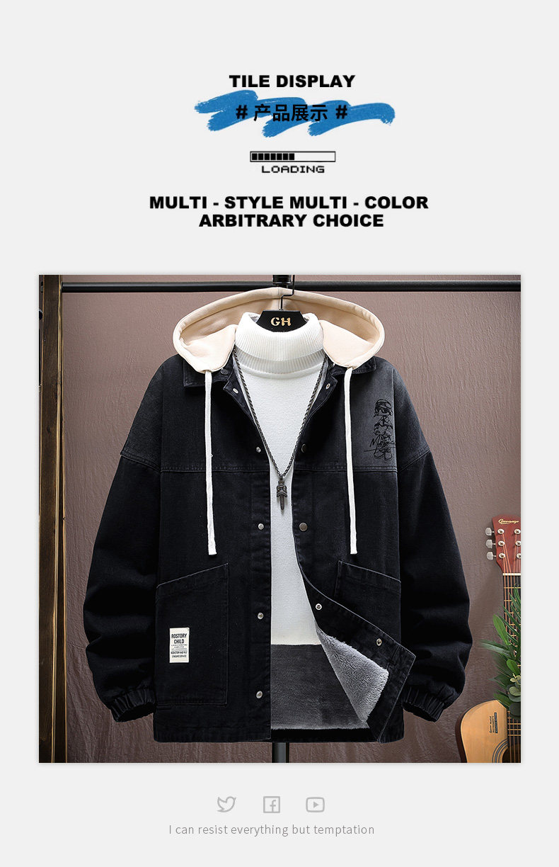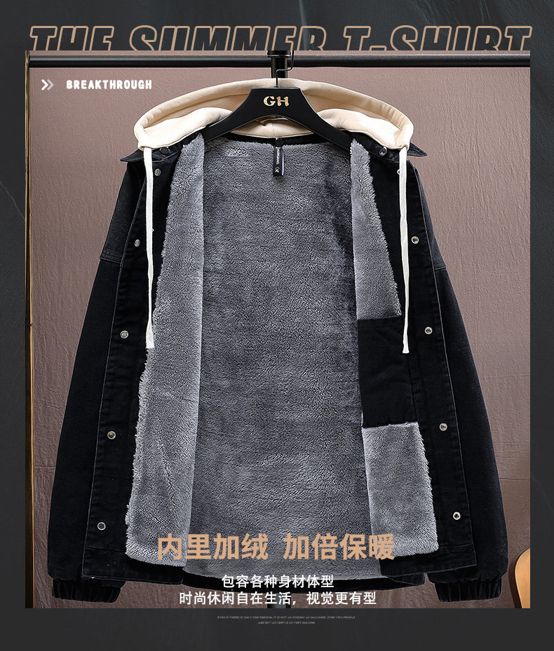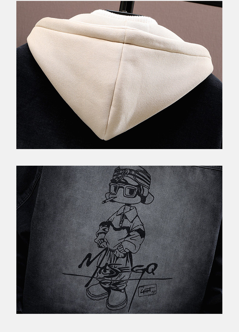 Teenagers winter velvet thickened denim cotton men's jacket hooded jacket junior and high school students trendy handsome suit