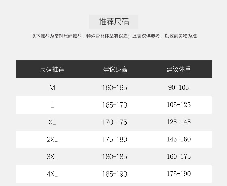 China (cm) 165 / 88-90 170 / 96-98 175 / 108-110 180 / 118-122 185 / 126-130