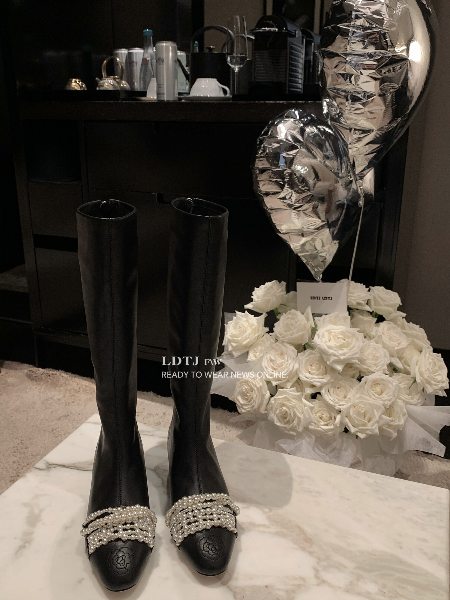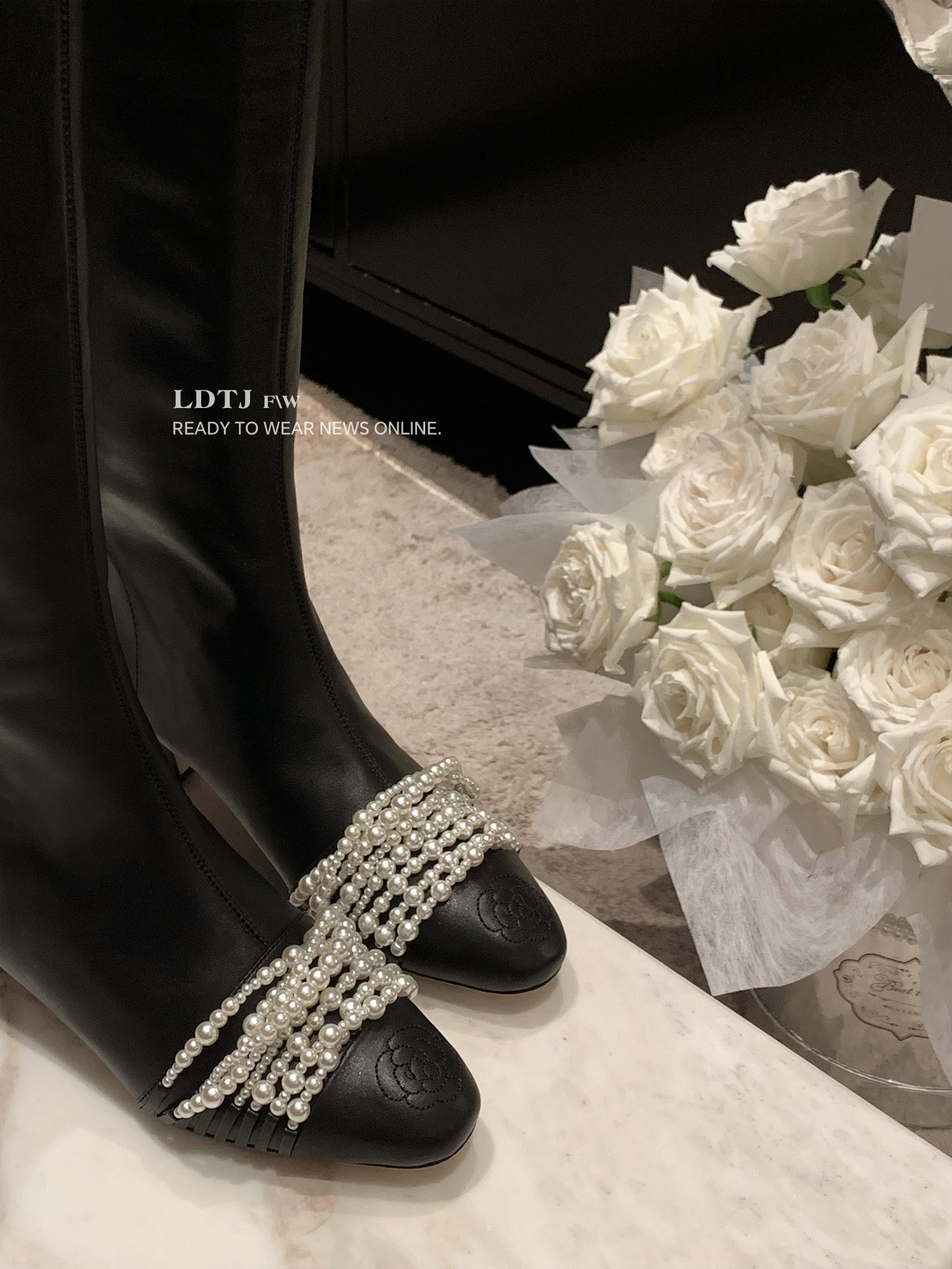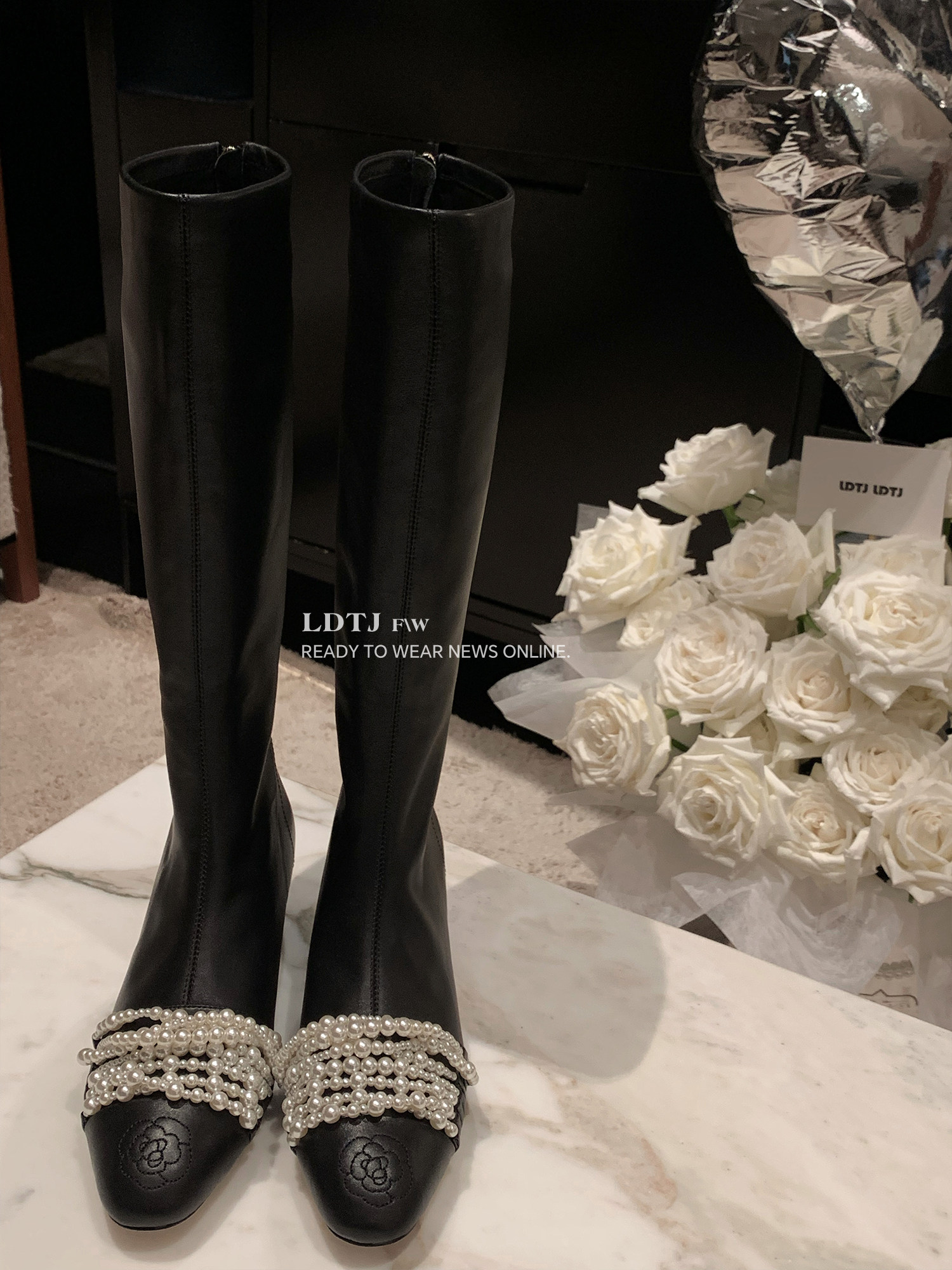 Ldtj High-End Custom-Made "Date Boots" Autumn Socialite Style Chanel-Inspired Pearl Long Boots with Thick Heels and Genuine Leather for Women