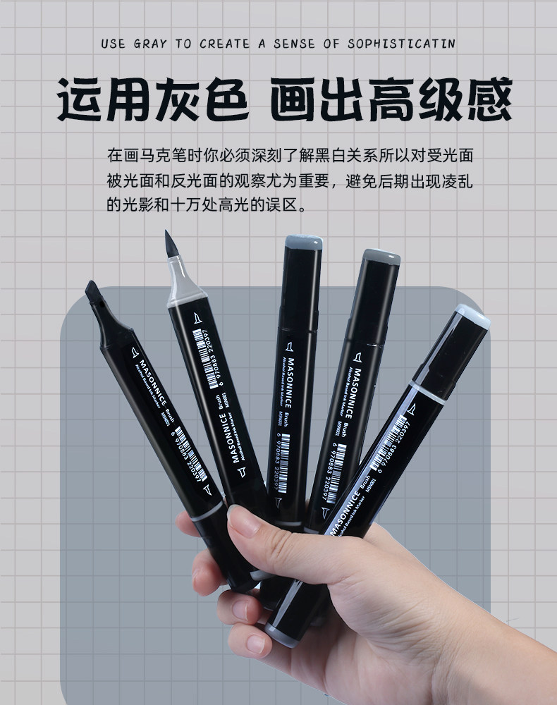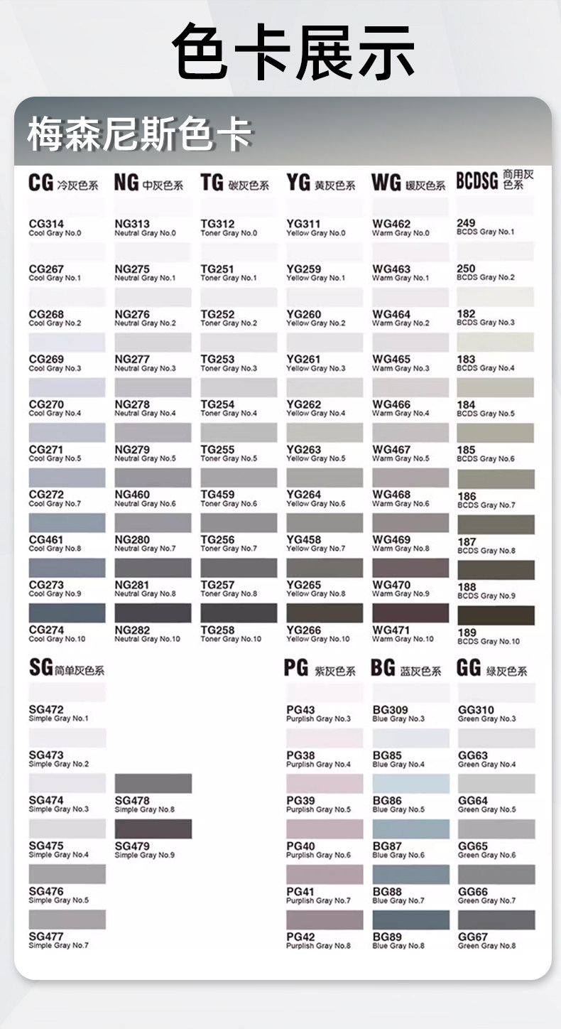 Sort by color Gray color of your choice (remark the color number when placing an order),10 pieces of cold gray + 10 pieces of warm gray,10 pieces of cool gray + 10 pieces of warm gray + 10 pieces of medium gray,Commonly used gray 24 pieces,Selected gray 36 pieces,Professional Gray 48 Count,CG cold gray (10 pieces),WG warm gray (10 pieces),NG medium gray (10 pieces),TG carbon ash (10 pieces),YG yellow gray (10 pieces),BCDSG commercial gray (10 pieces),SG simple gray (8 pieces),PG purple gray (6 pieces),BG blue gray (6 pieces),GG green gray (6 pieces),Full set of gray (86 pieces),Skin color 12 colors,12 blue series,12 green series,12 pieces of brown color,12 red series,12 yellow series,12 blue and green colors,12 pieces of yellow and green series,12 pieces of yellow and red series,Sketch 60 colors,Sketch 72 colors,Sketch 120 colors