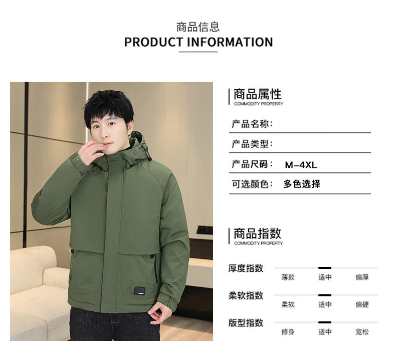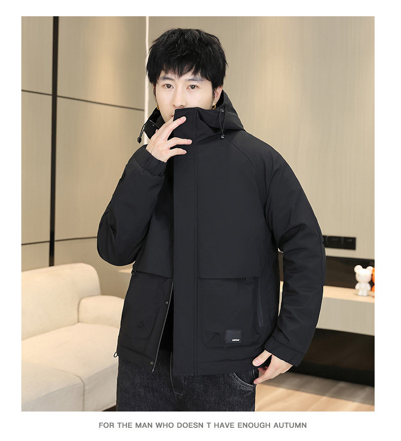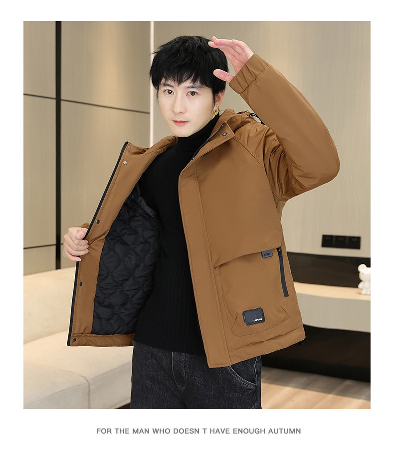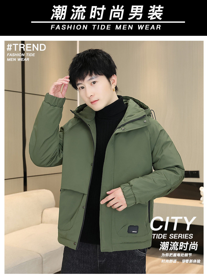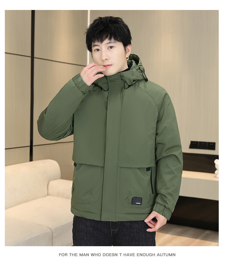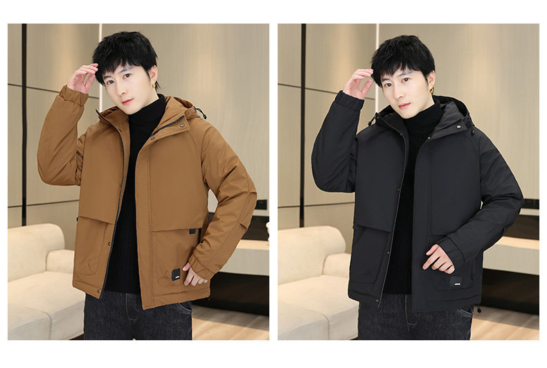 Men's Winter Jacket with Cotton Padding, Thick Hooded Coat, Workwear Cotton Jacket, Trendy Warm Outdoor Cold-Proof Jacket
