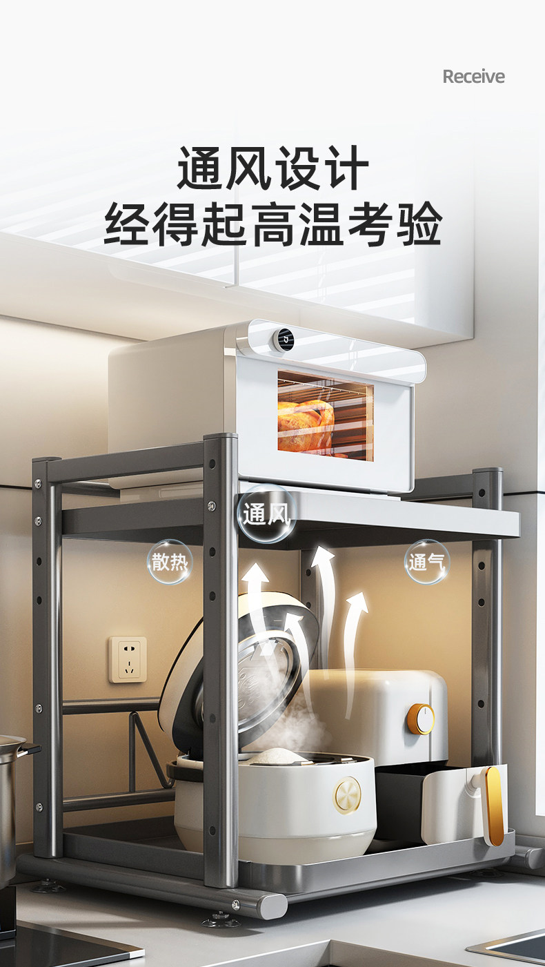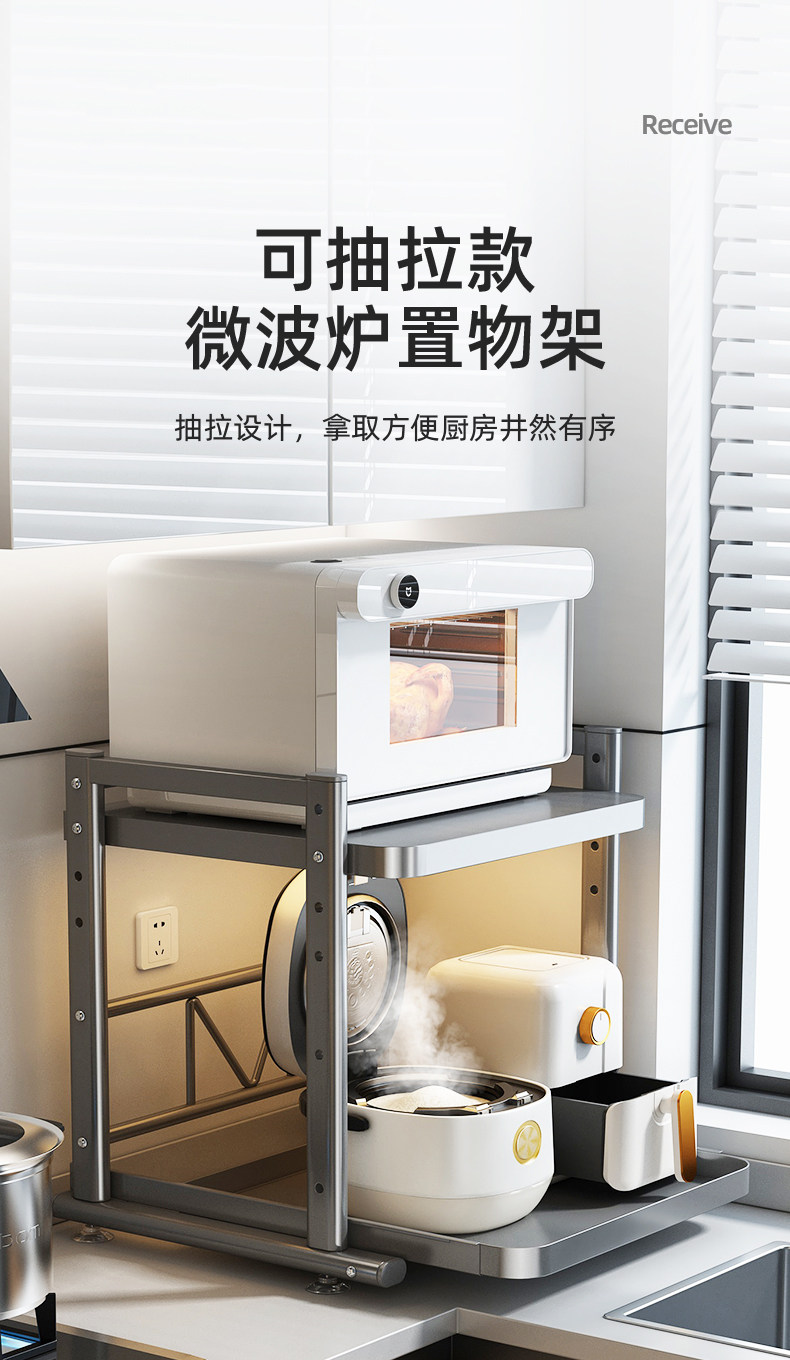 Rice Cooker Storage Rack Kitchen Multi-Functional Appliance Oven Pot Rack Countertop Pull-Out Microwave Storage Shelf