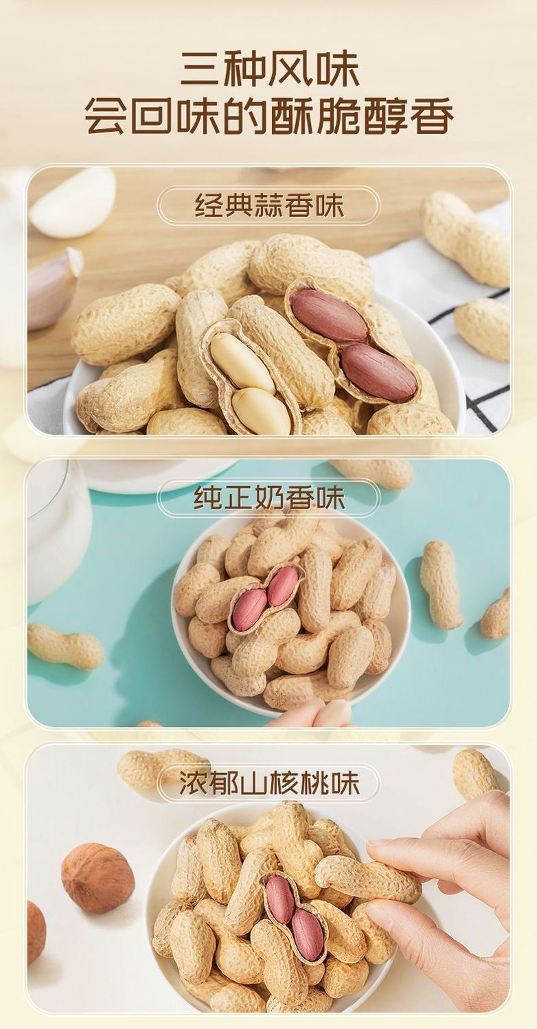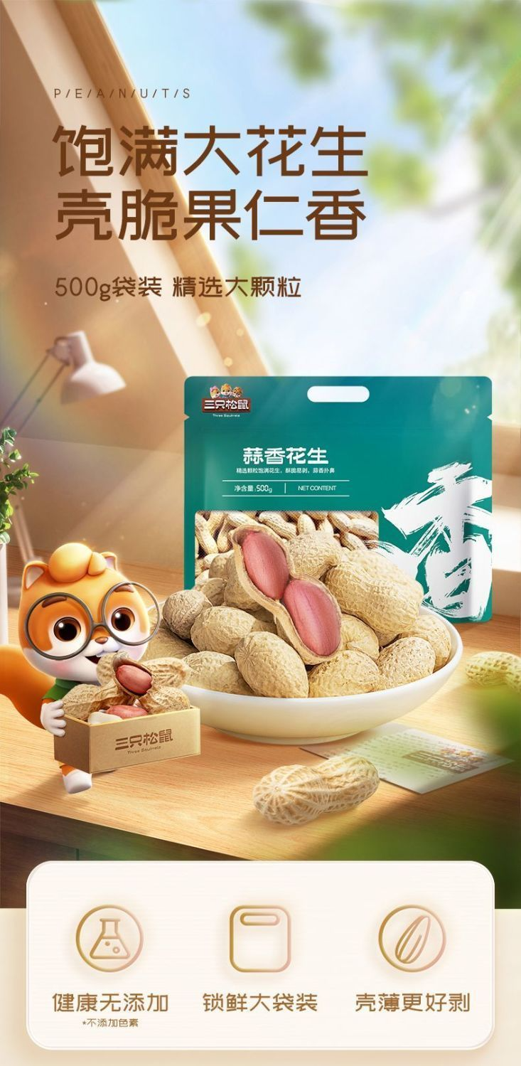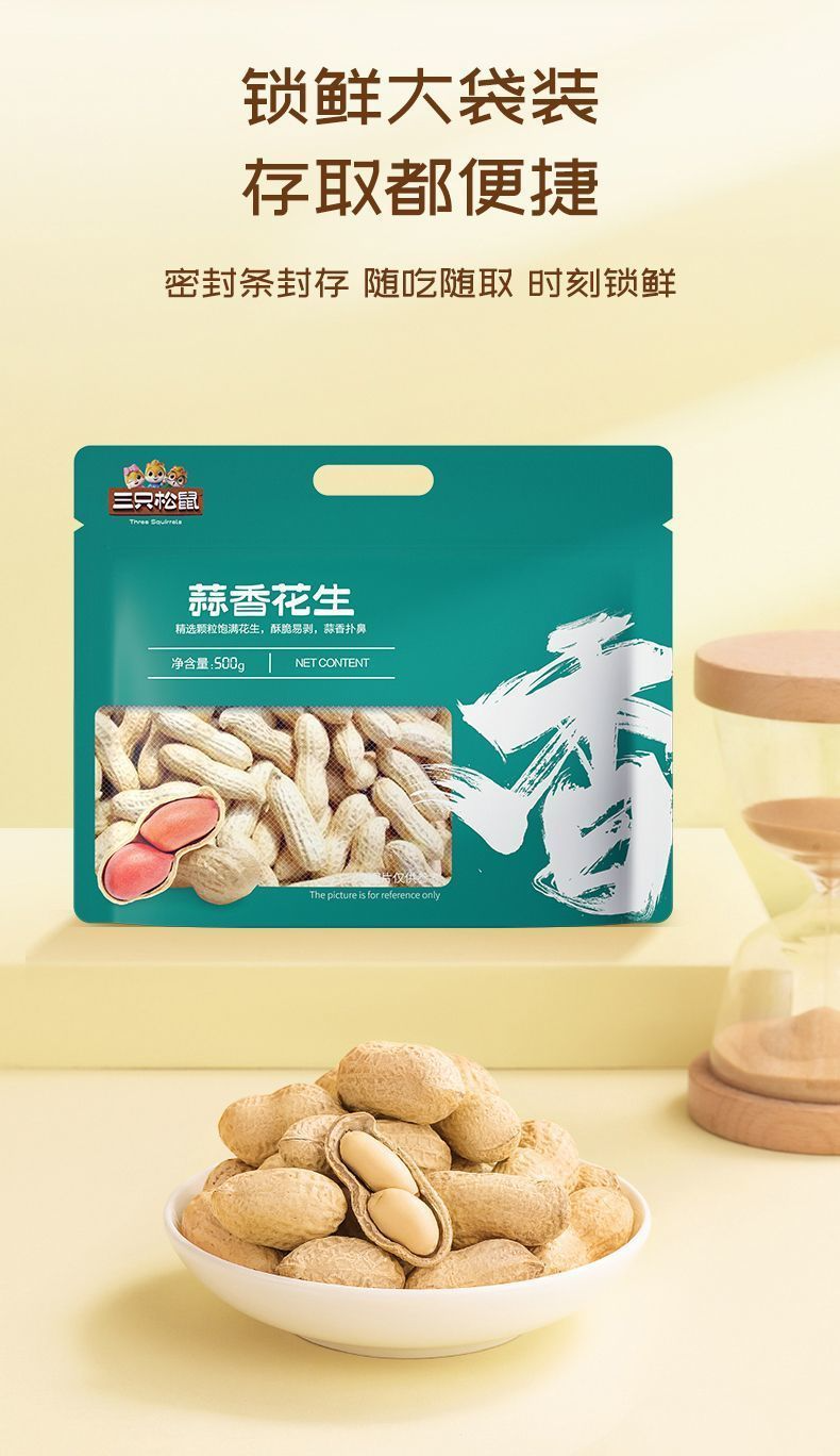 Three Squirrels Peanuts 500g Garlic Flavor Peanuts Milk Flavor Peanuts Pecan Flavor Nuts Roasted Snacks Leisure Snacks