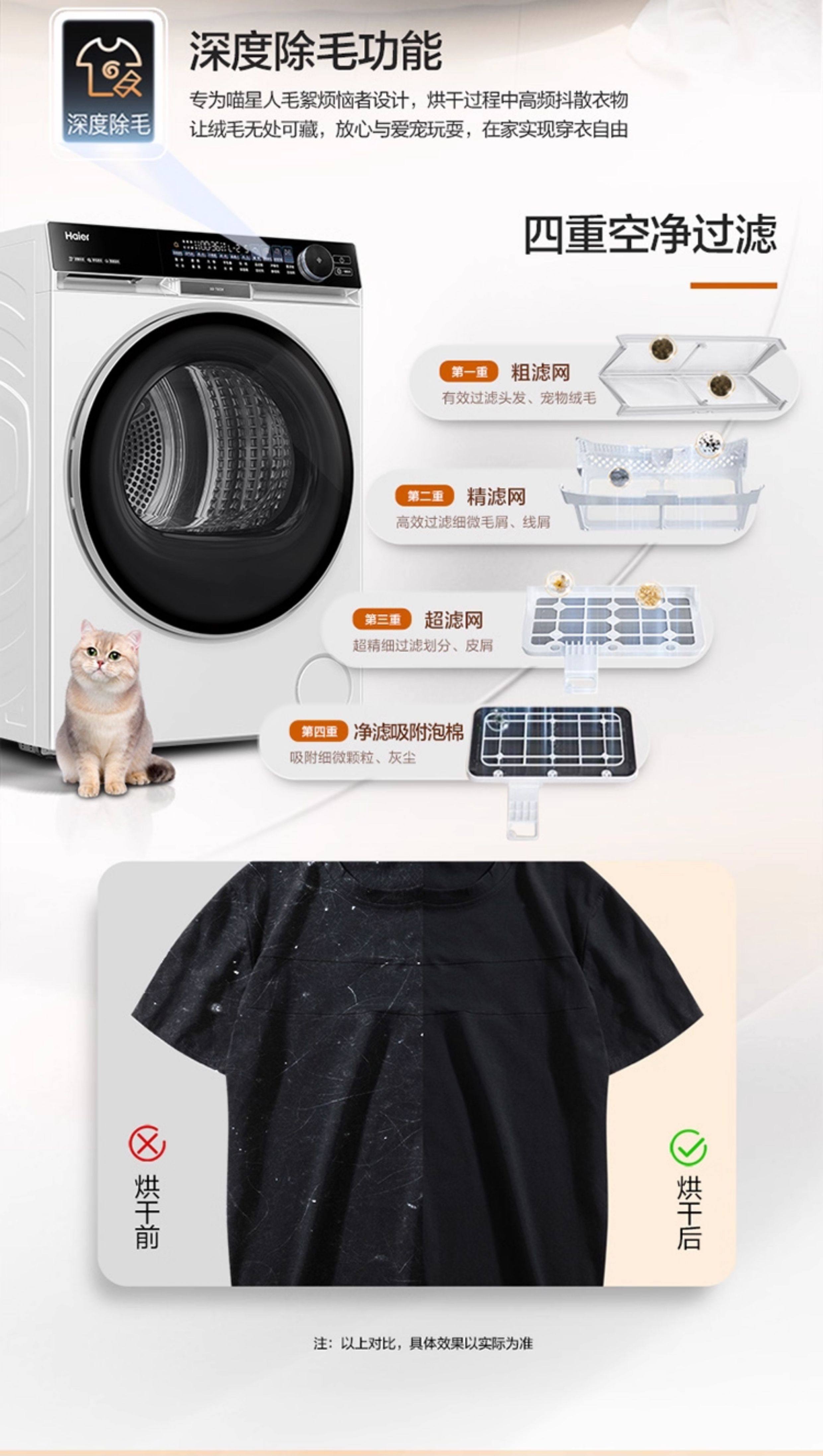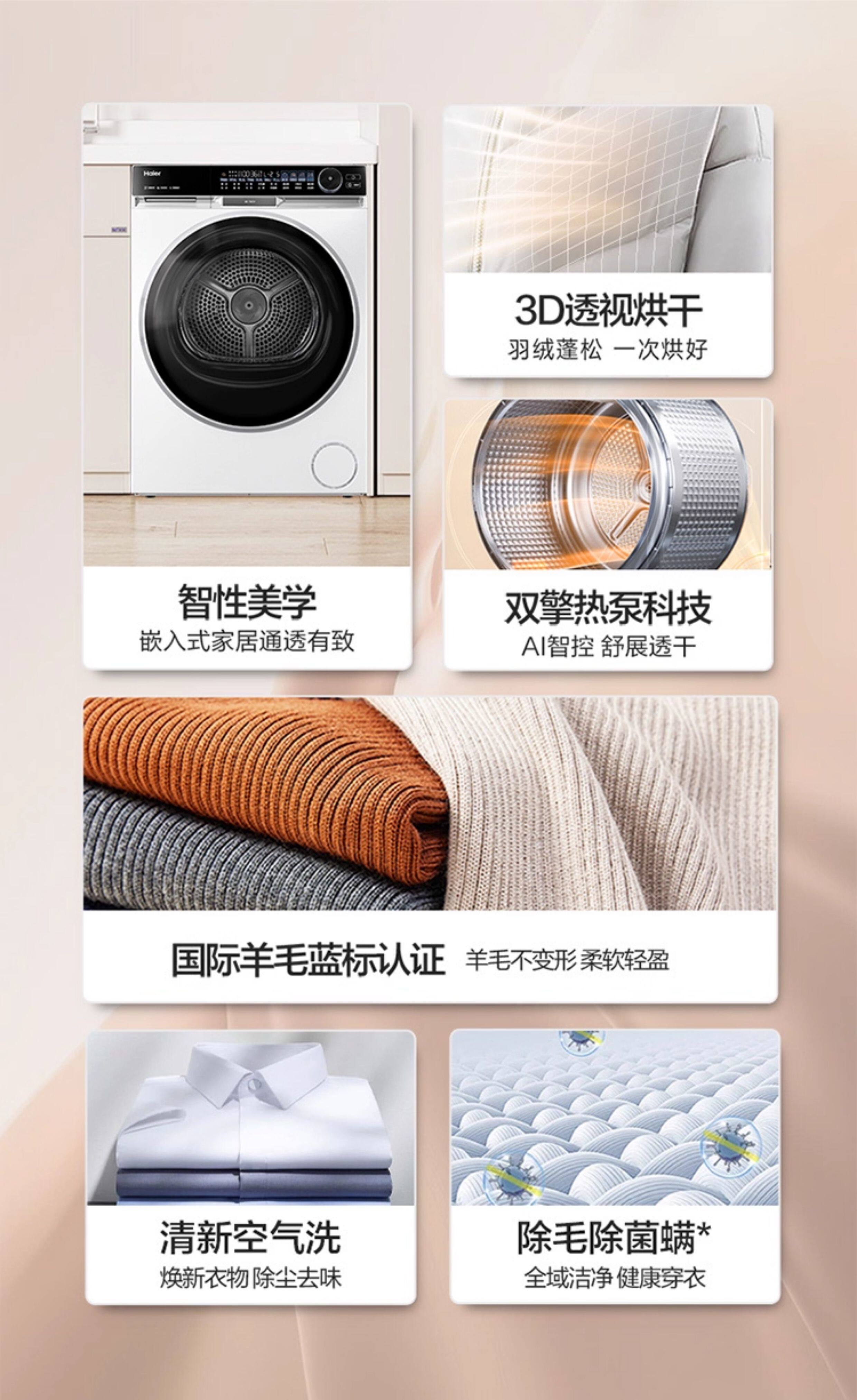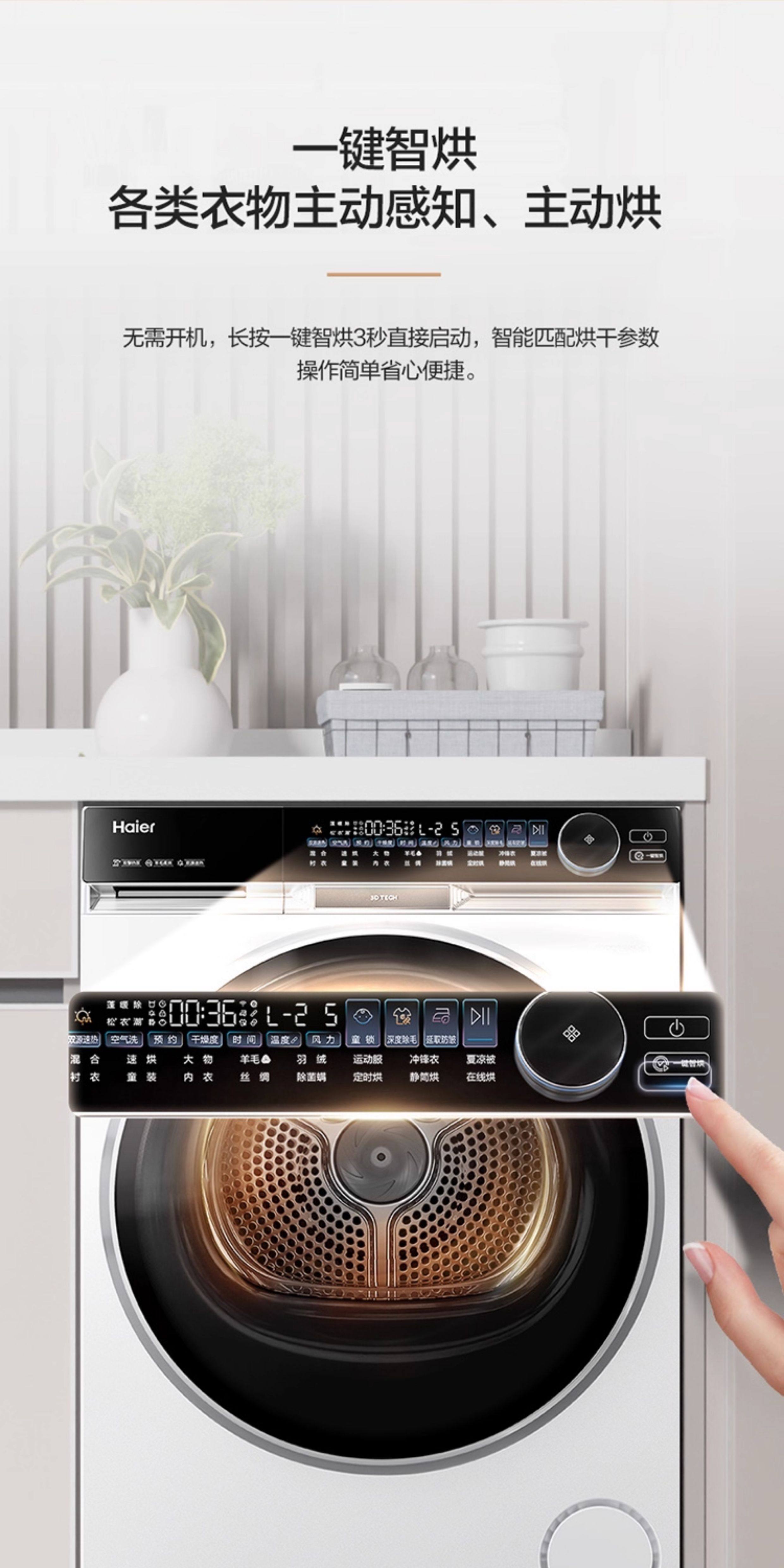 [X11]Haier Dryer for Home Use, Ultra-Thin Dual-Engine Heat Pump 10kg Tumble Dryer 536 White