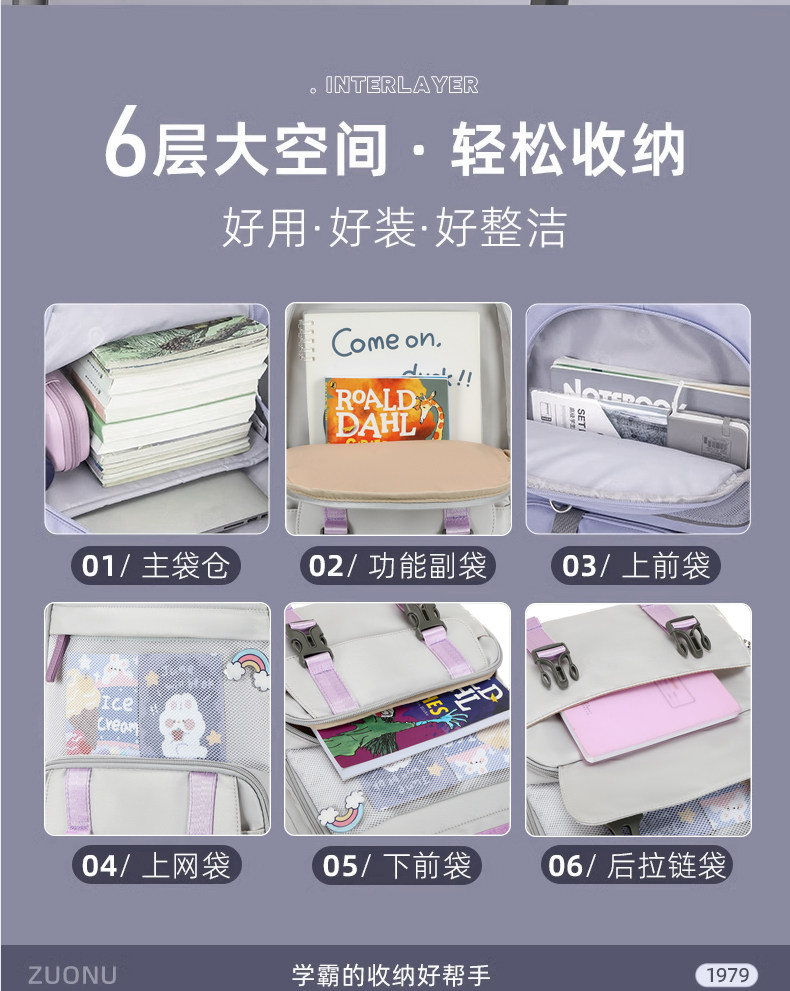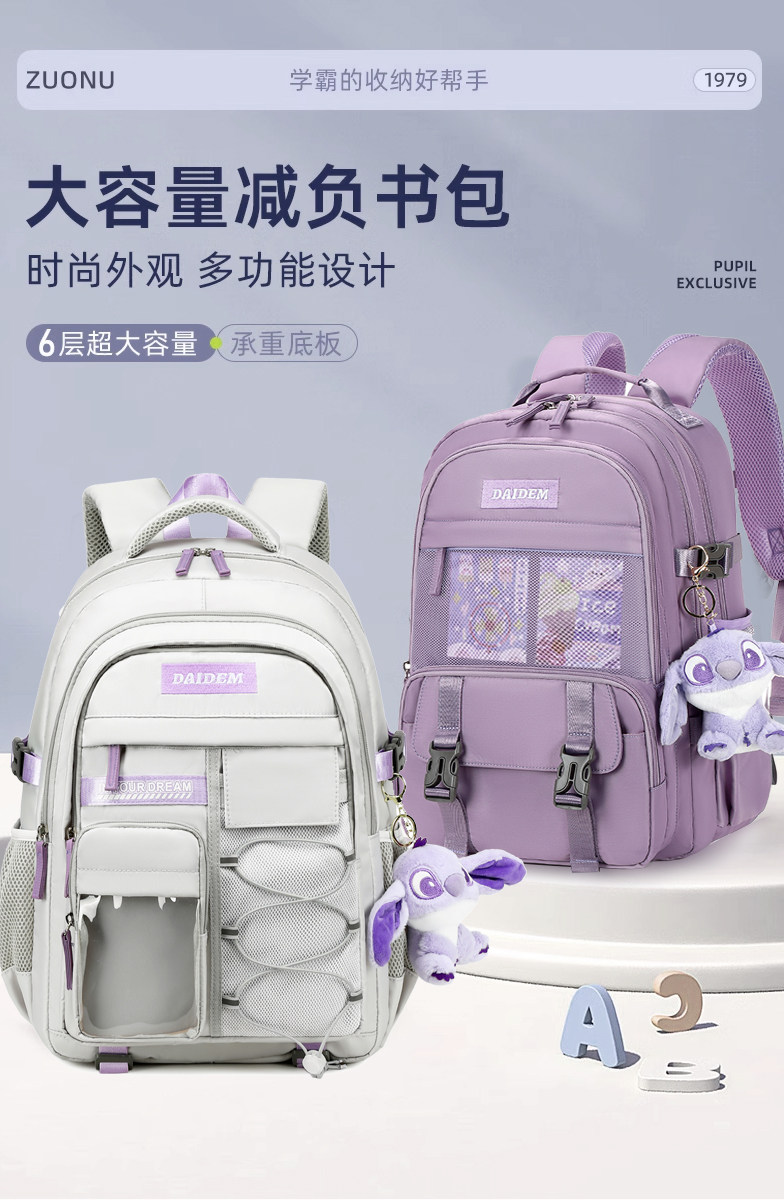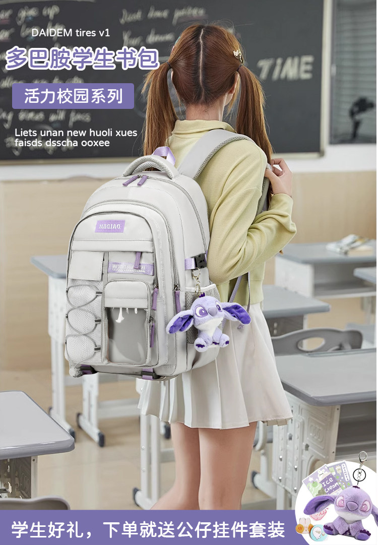 Junior high school student schoolbag female super large capacity high school student female primary school student good-looking third to sixth grade lightweight backpack