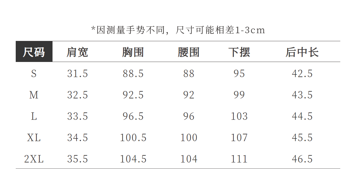 Size (cm) 42 44 46 48 50
