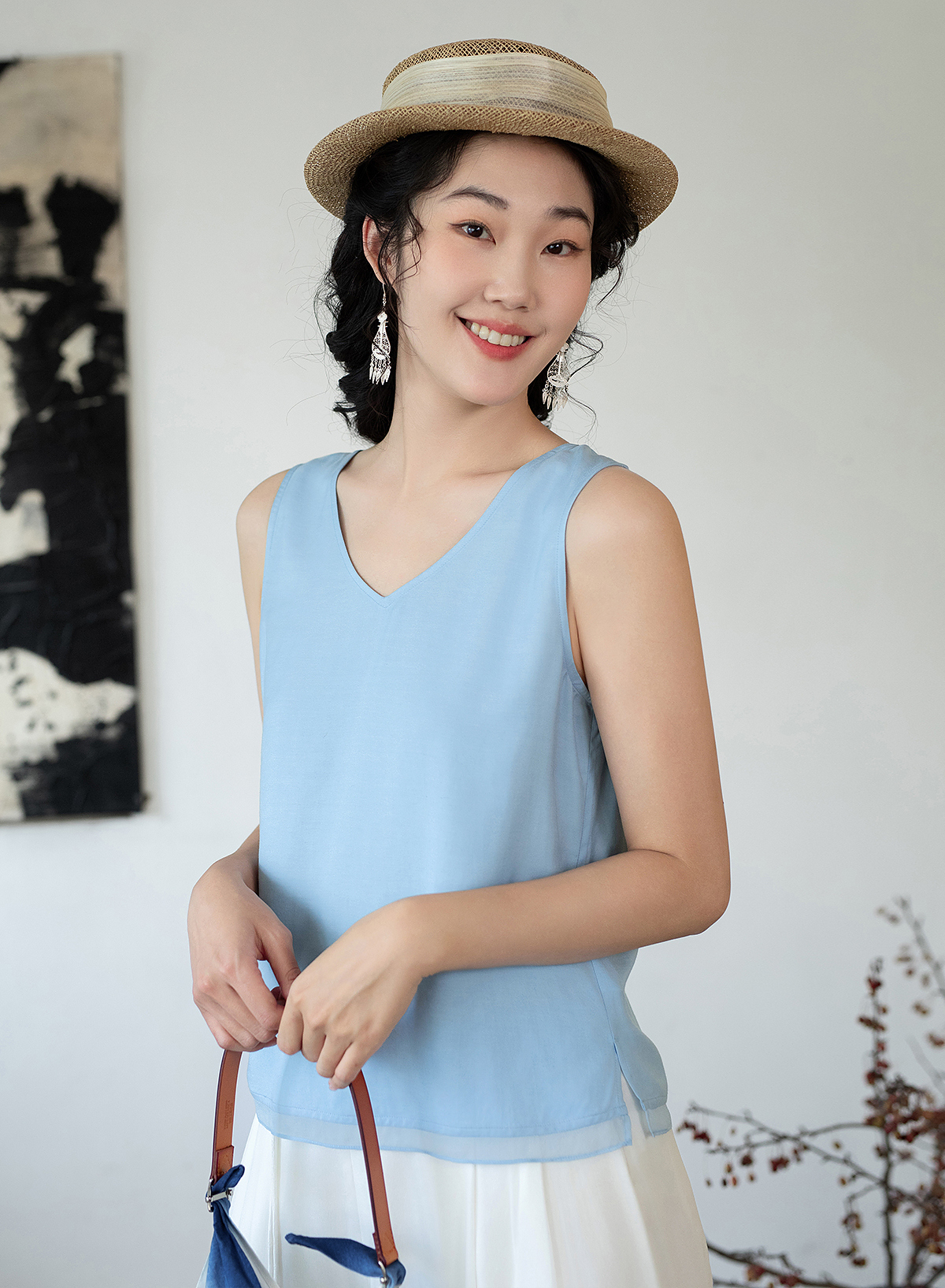 Living in Zuo Multi-Color Versatile Camisole Silk Bamboo Fiber Skin-Friendly 2025 Spring New Sleeveless Inner Vest for Women