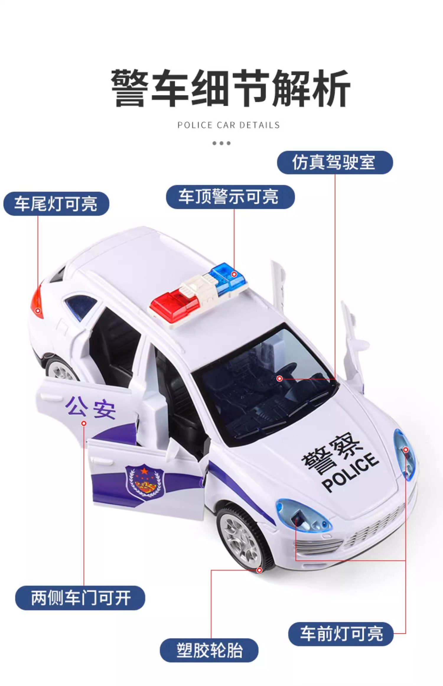 Color Classification Electric Universal Automatic Door Opening Police Car,Electric Light-Up Universal Wheel Automatic Opening Police Car