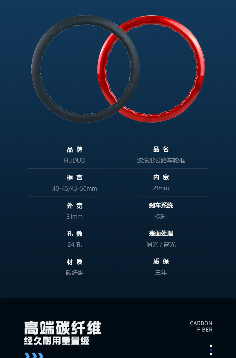 Hudud Arc Carbon Fiber Wave Rim Road Bike Full Carbon Fiber 24-Hole Rim 700C Bicycle Knife Rim