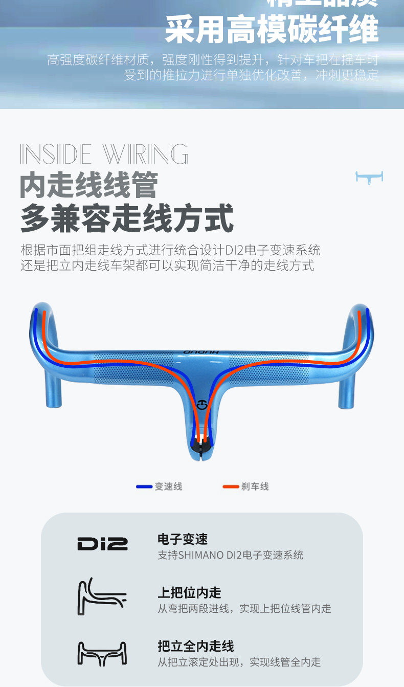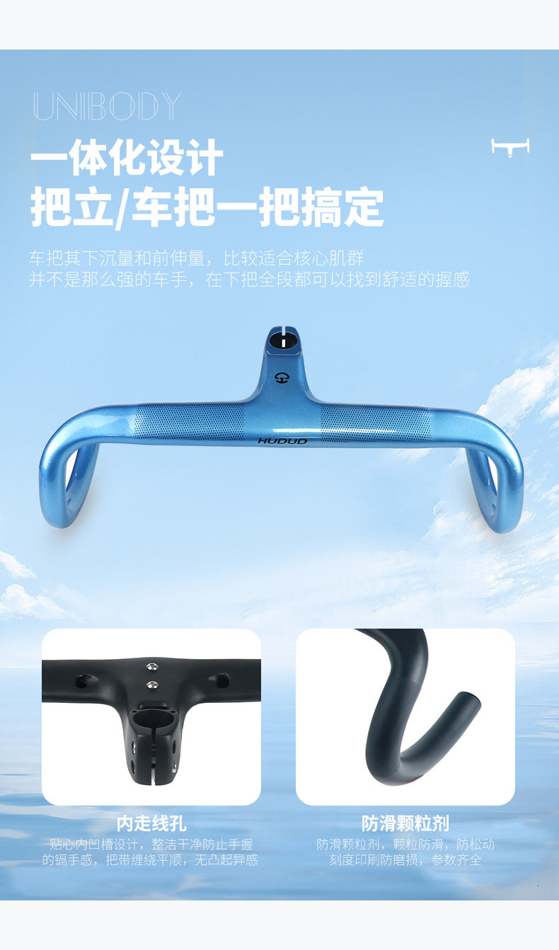 Arc-Shaped Hudud Wind-Breaking Carbon Fiber Integrated Handlebar, Ultra-Light New Road Bike with Fully Internal Cable Routing and Curved Handlebars