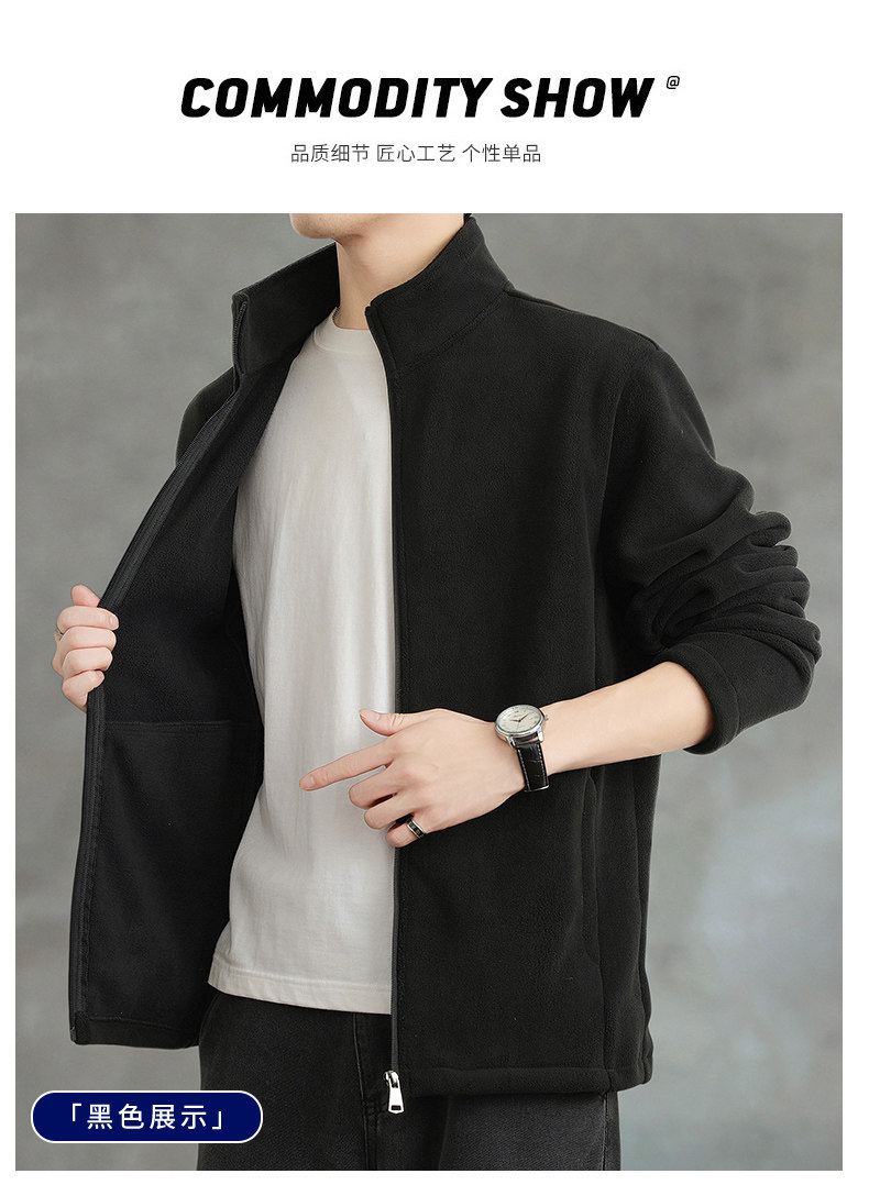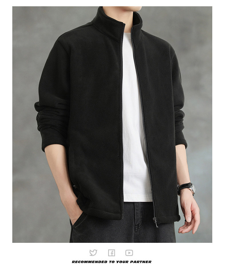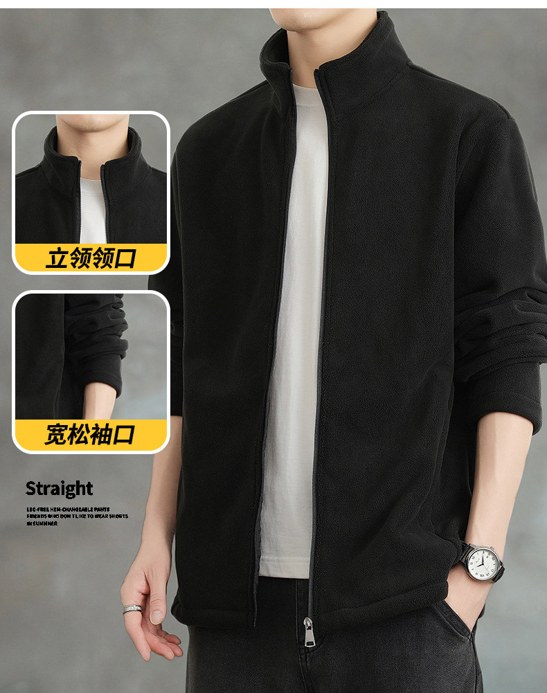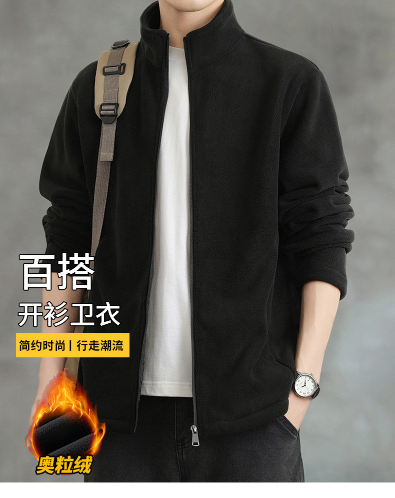Orienteering Fleece Stand-Up Collar Cardigan Jacket for Men, Double-Sided Fleece Thickened Clothing, Autumn and Winter Inner Layer, Warm Jacket, Men's Sweatshirt