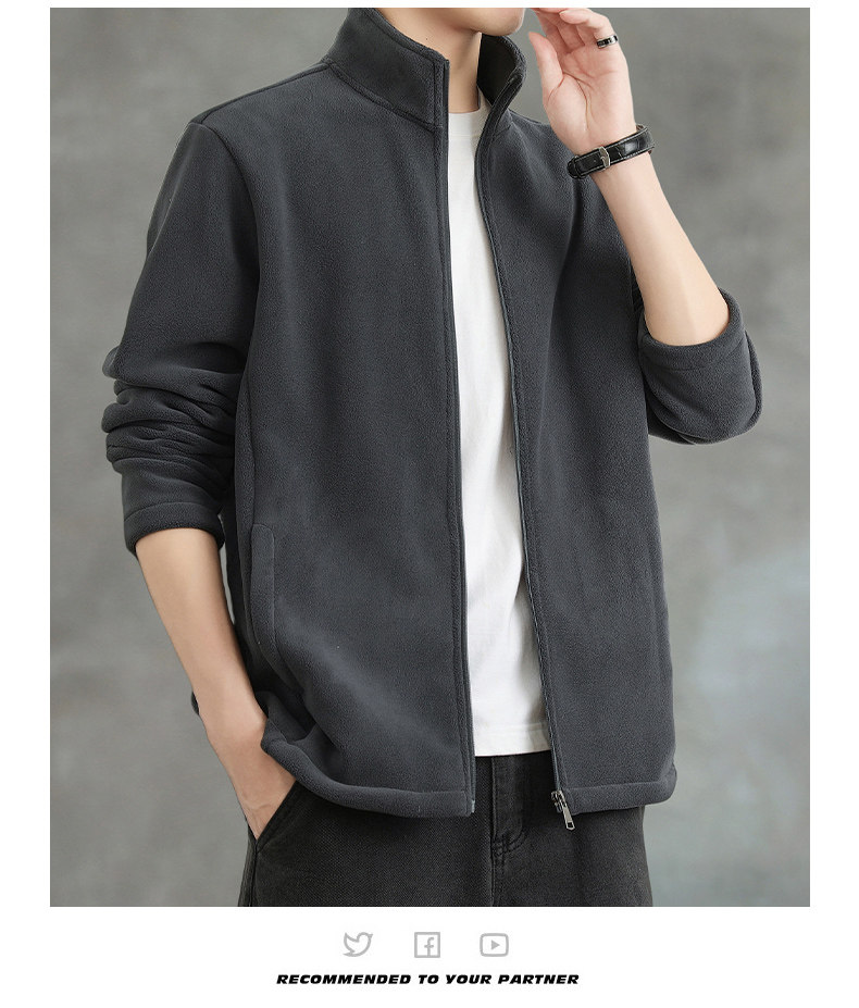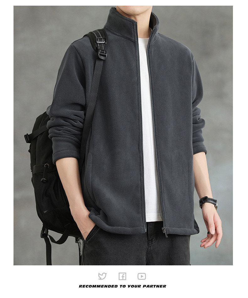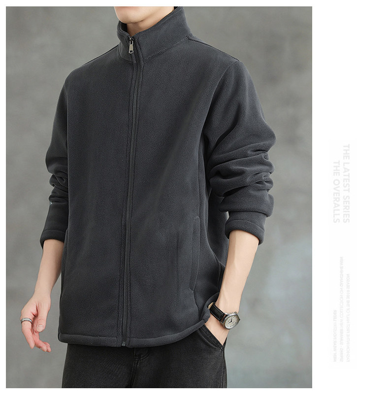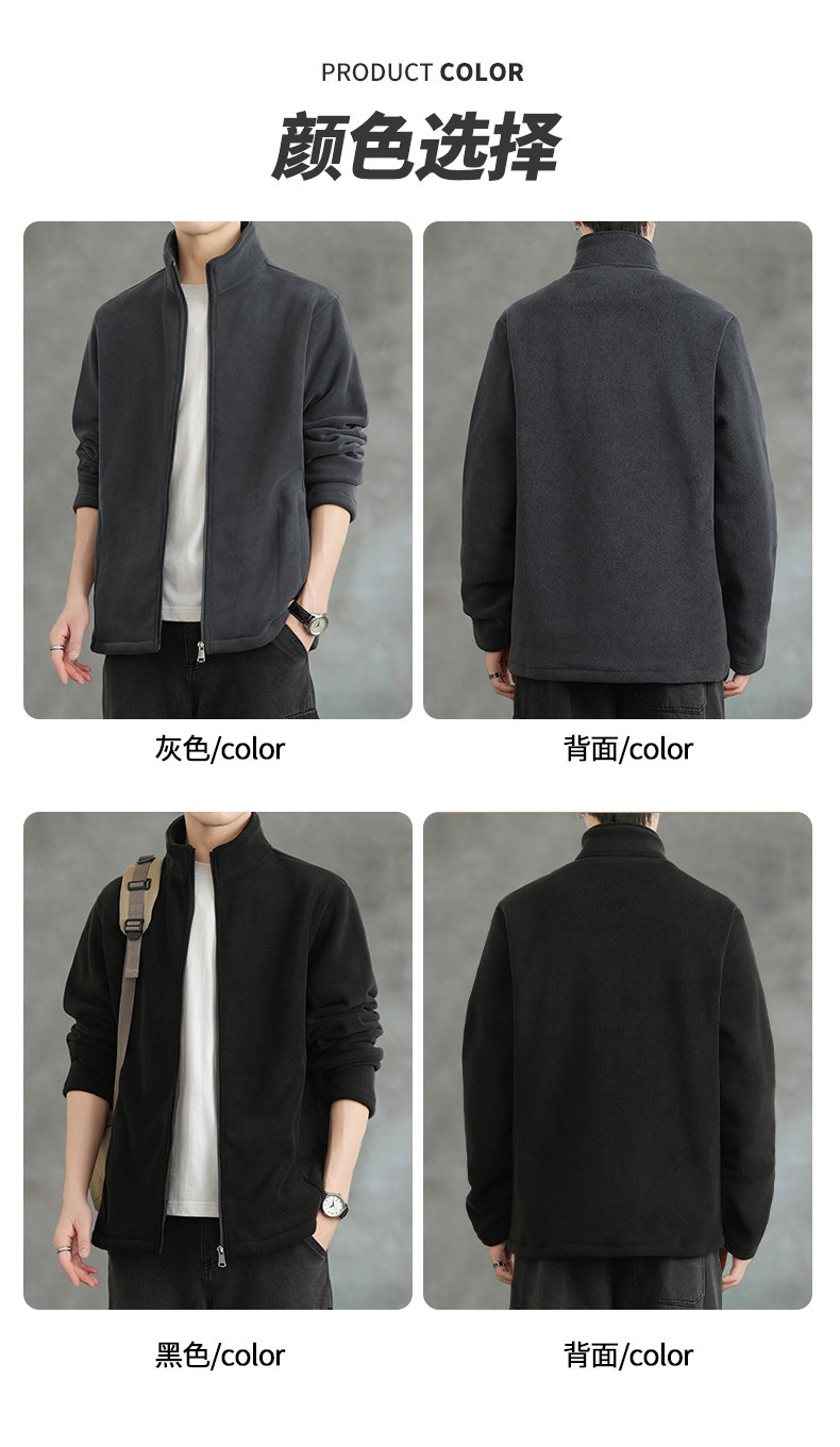 Orienteering Fleece Stand-Up Collar Cardigan Jacket for Men, Double-Sided Fleece Thickened Clothing, Autumn and Winter Inner Layer, Warm Jacket, Men's Sweatshirt