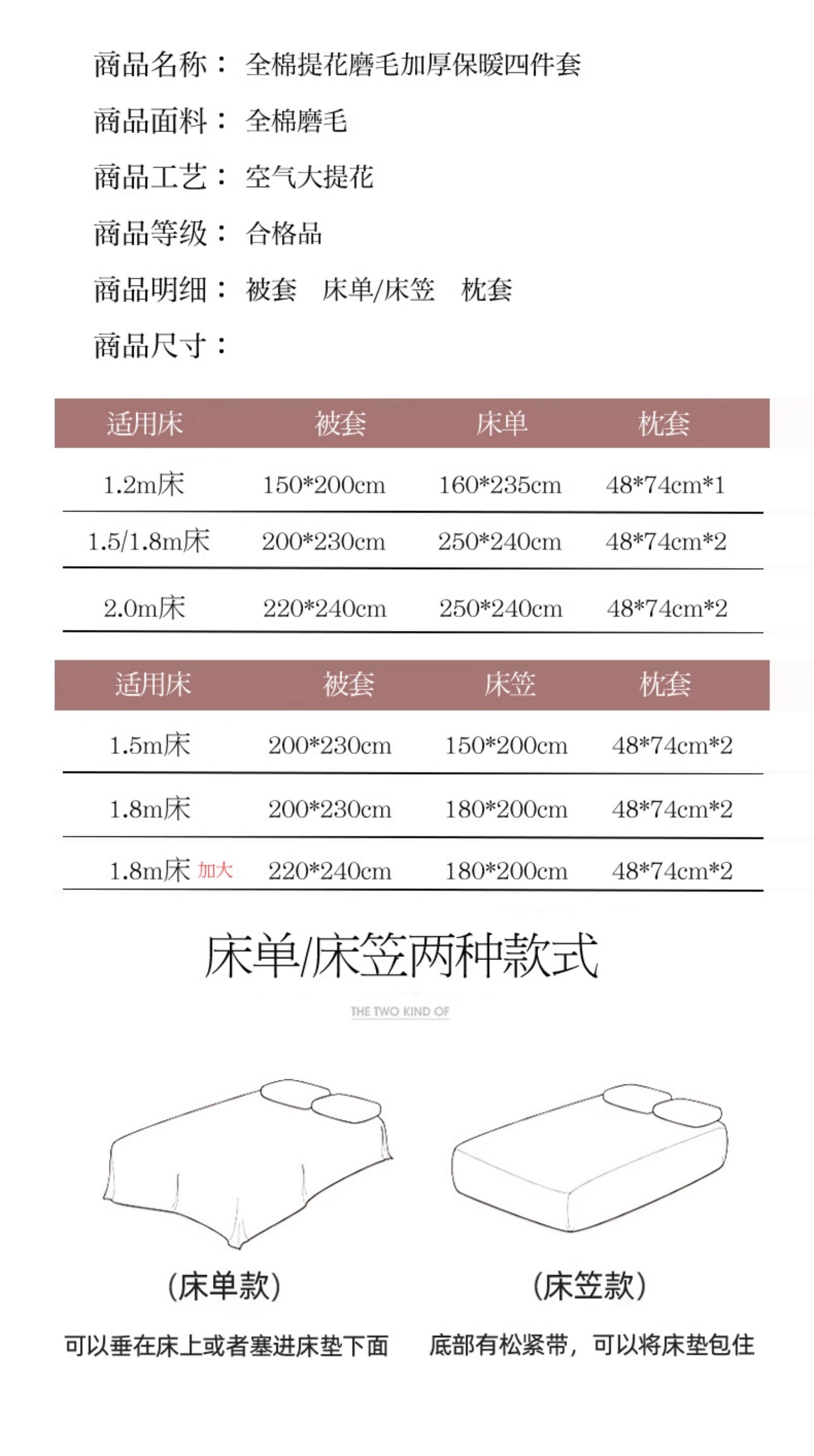 Applicable bed size Three-piece set for student dormitory suitable for 150x200cm quilt,1.2m three-piece bed sheet set, bed sheet 160x235, quilt cover 150x200,1.5m four-piece bed sheet set, bed sheet 240x250, quilt cover 200x230,1.8m four-piece bed sheet set, bed sheet 240x250, quilt cover 200x230,2.0m four-piece bed sheet set, bed sheet 240x250, quilt cover 220x240,1.5 meters 4-piece set of bed cover 150x200 quilt cover 200x230,1.8 meters 4-piece set of bed cover 180x200 quilt cover 200x230