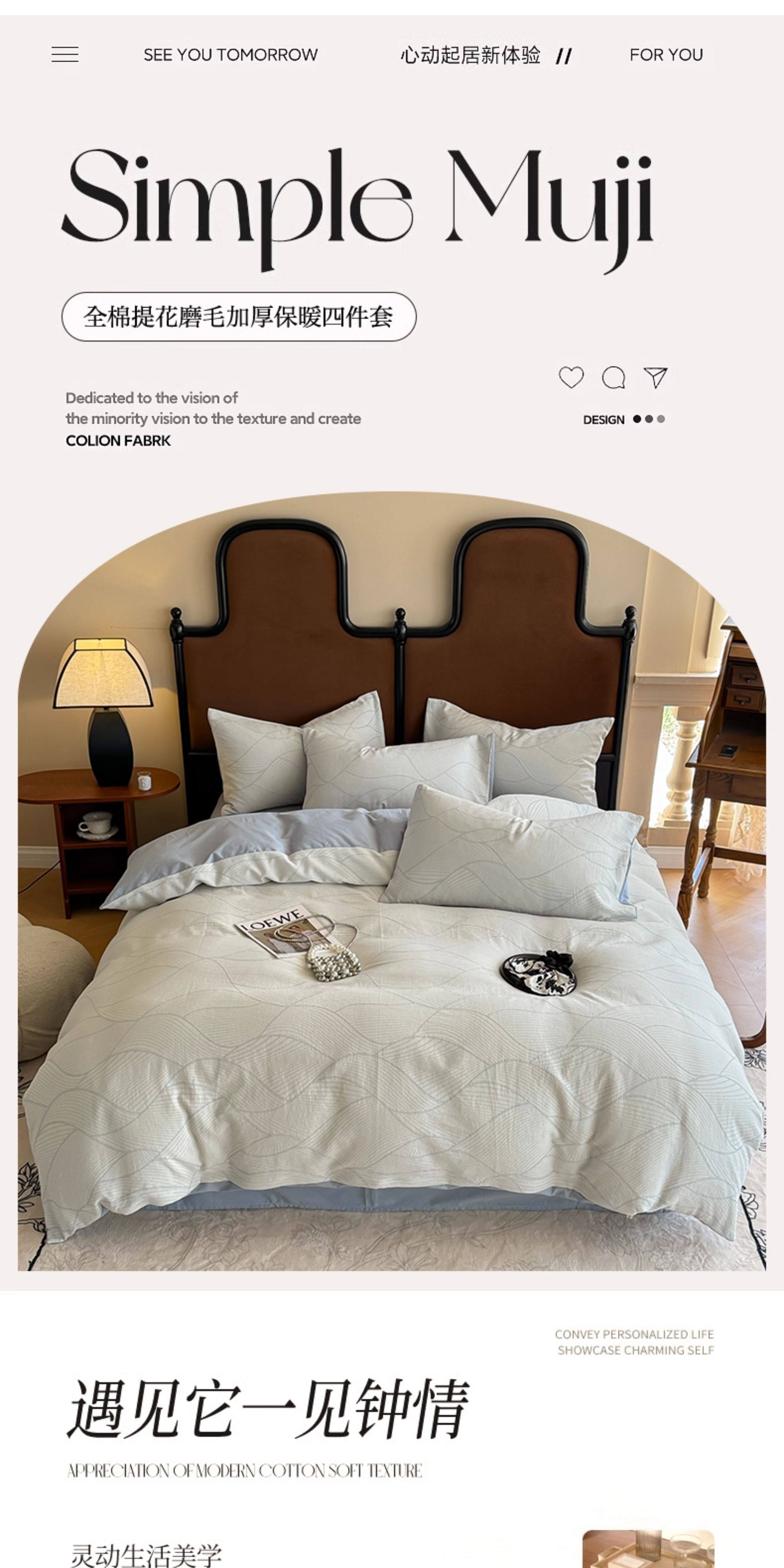 Yalu cotton brushed bed four-piece set 2024 new pure cotton autumn and winter bedding warm sheets quilt cover bed sheet