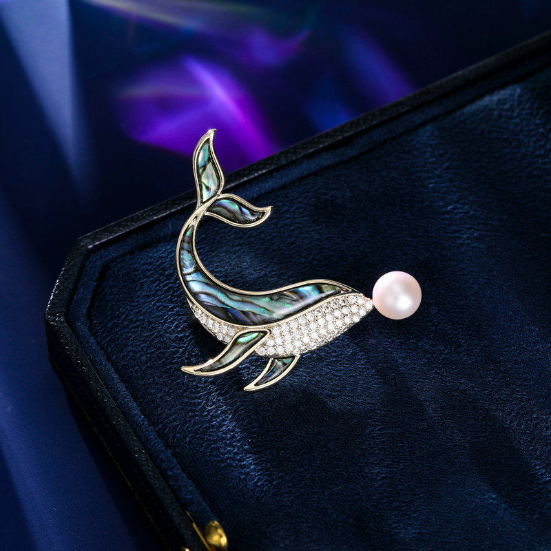 Autumn and winter blazer accessories unisex clothing fastening pins natural abalone shell pearl dolphin brooch