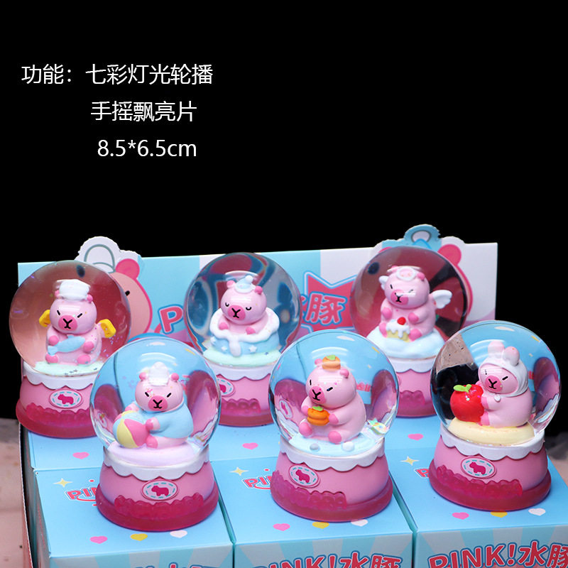 Pink Capybara Crystal Ball Blind Box Creative Capybara Daily Desktop Ornament Glowing Figurine Gift for Children