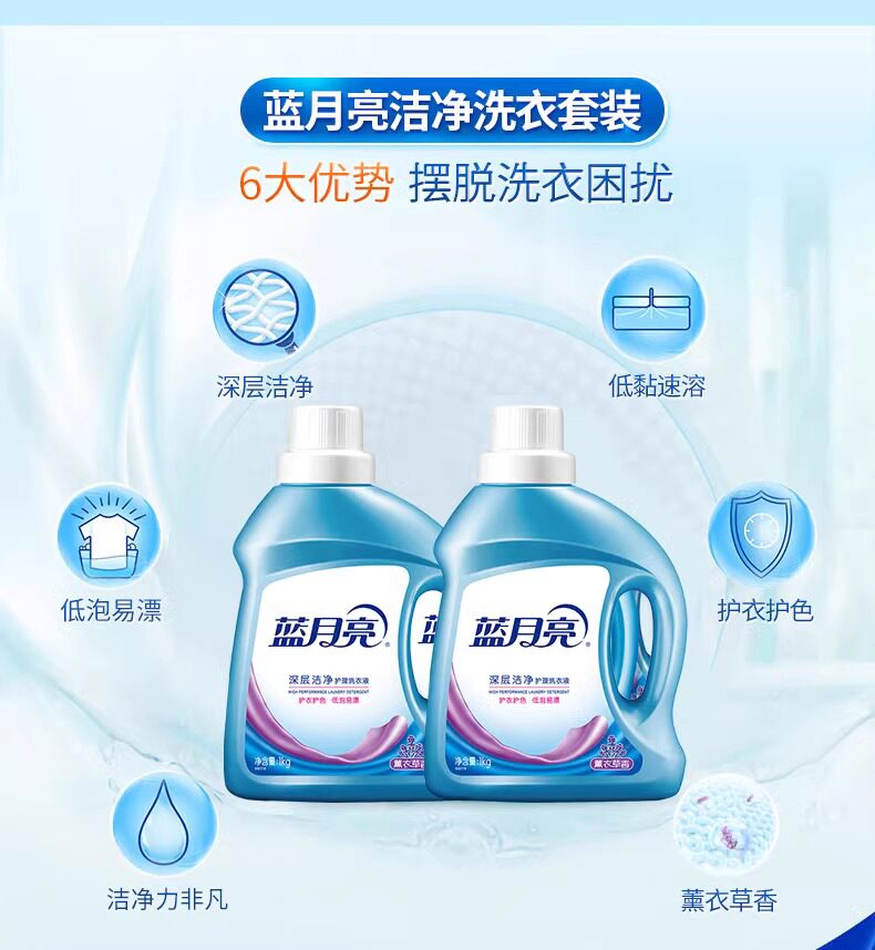 Blue Moon Laundry Detergent, Whole Box, Brightening and Whitening, Deep Cleaning, Household Economical Pack, Refill Bag, Long-Lasting Fragrance, Genuine Product