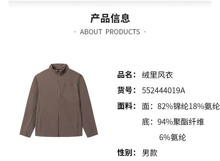 361 Men's velvet lined windbreaker sports jacket 2024 winter new stand collar casual top 552444019A