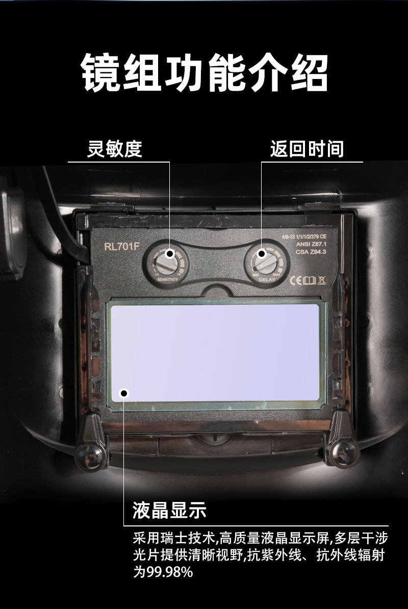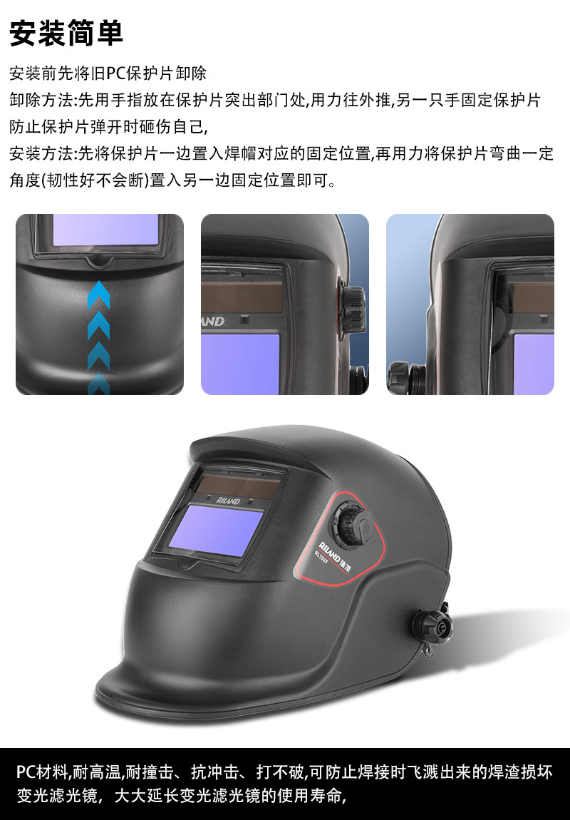 Ruilin Rl701F Welding Mask, Automatic Darkening, Argon Arc Welding, Head-Mounted Welder-Specific Welding Helmet, Anti-Sunburn