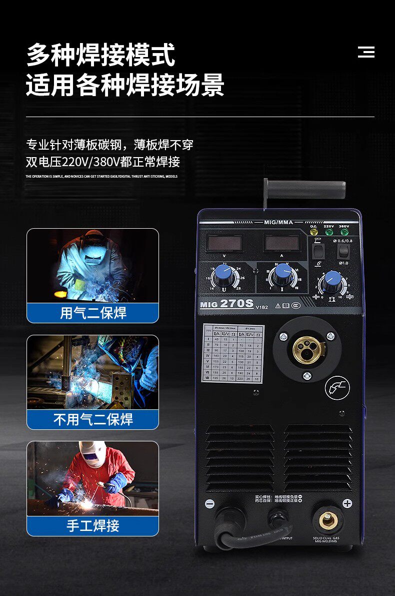 Ruiling Mig250 270 Gasless Two-Protection Welding Machine Three-Use Dual-Voltage Two-Protection Welding Machine with Integrated Welding Machine