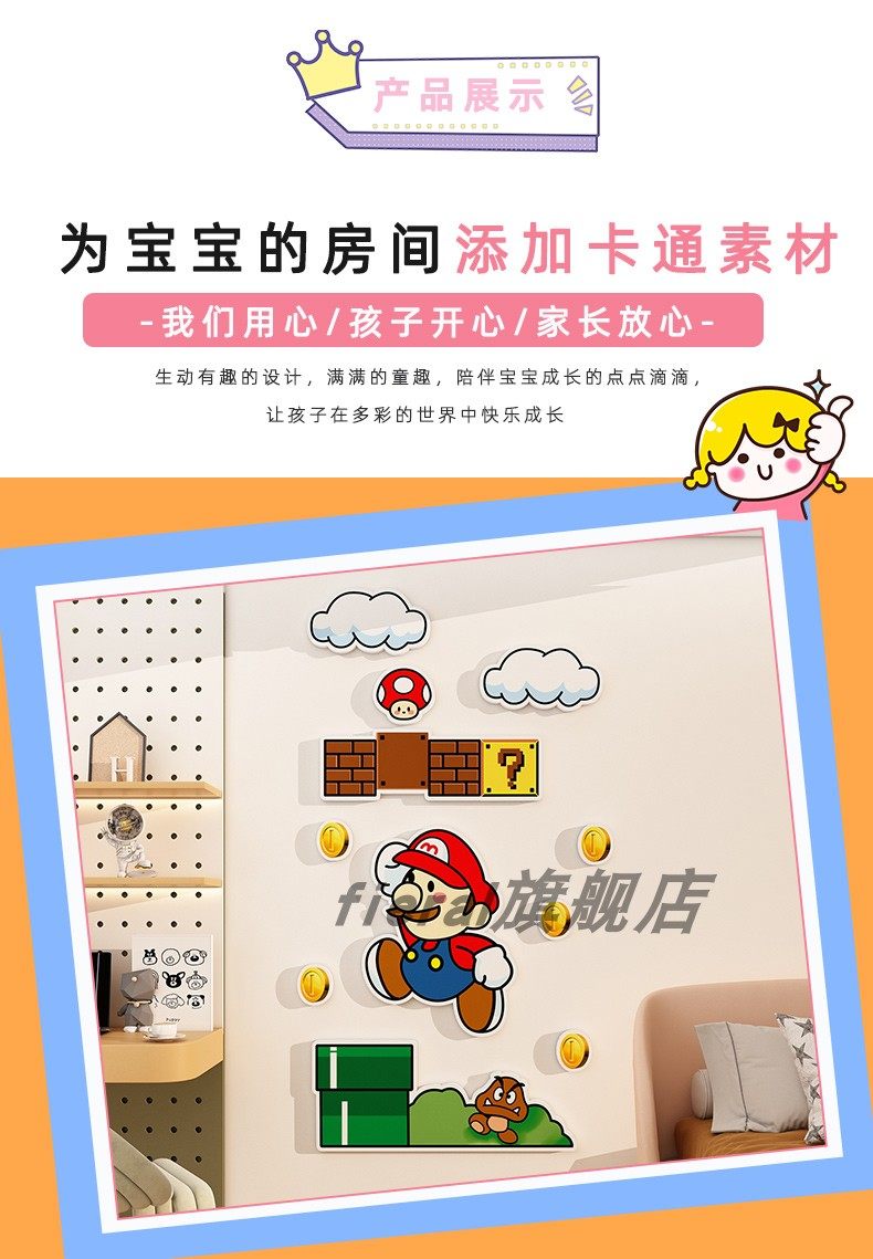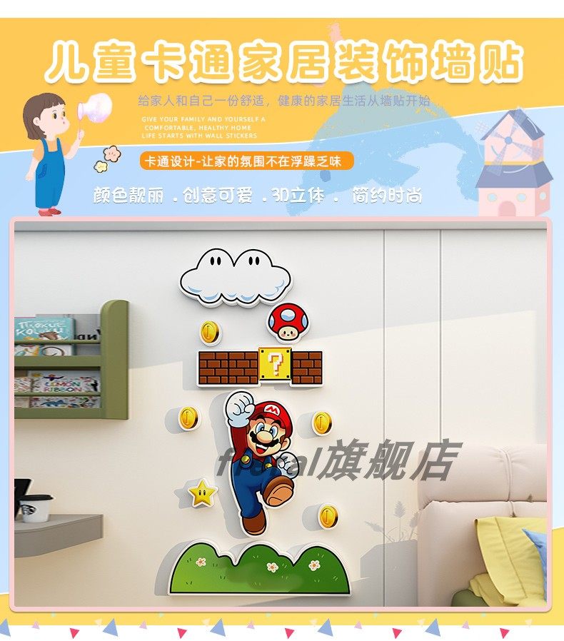 Super Mario Wall Decoration Children's Room Layout Bedroom Bedside Background Wall Three-Dimensional Wall Stickers