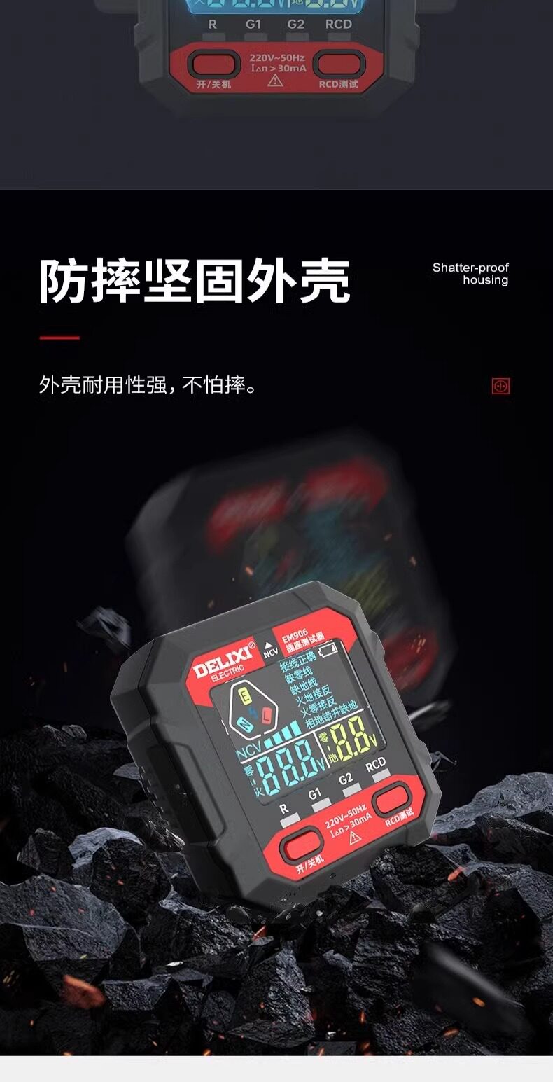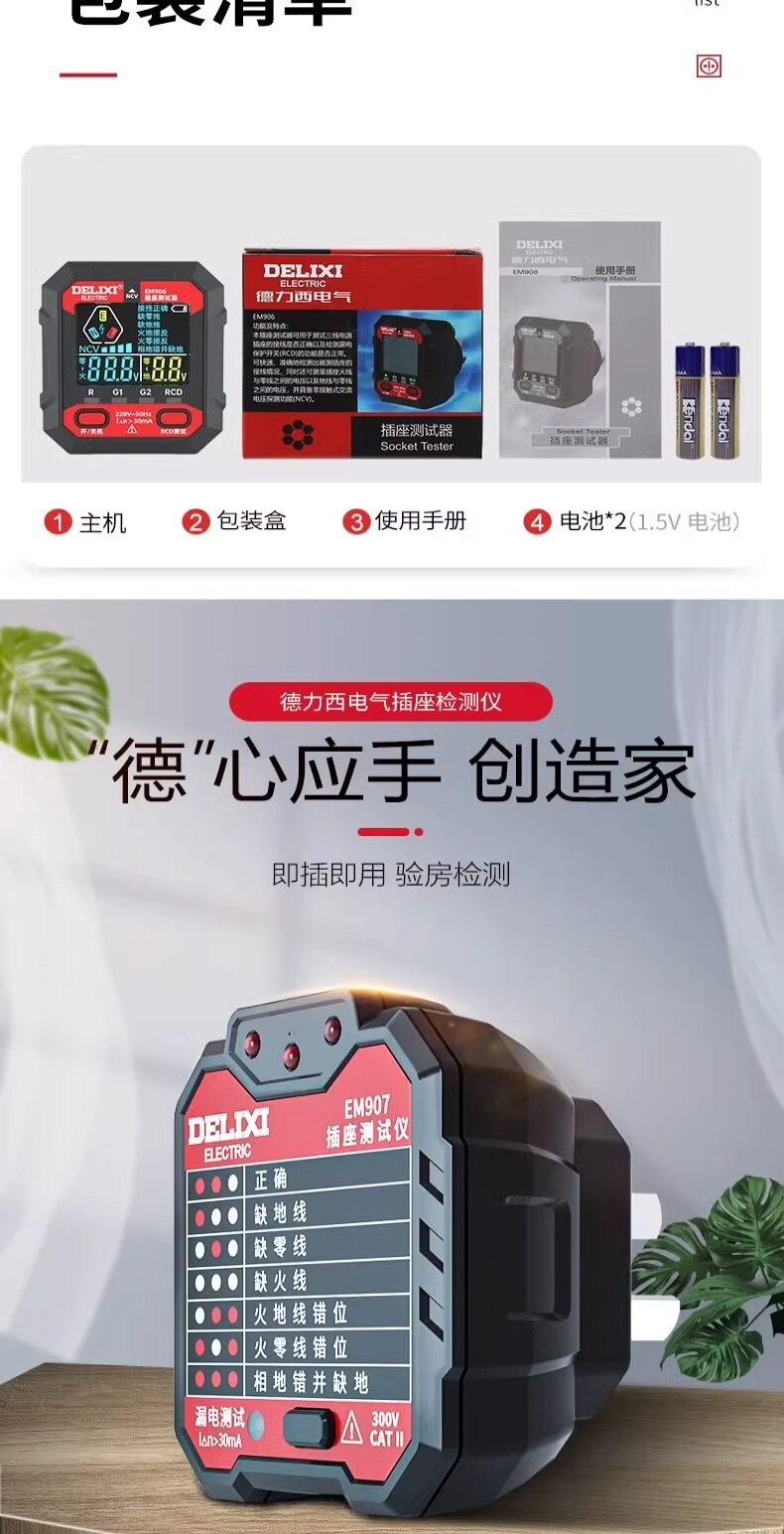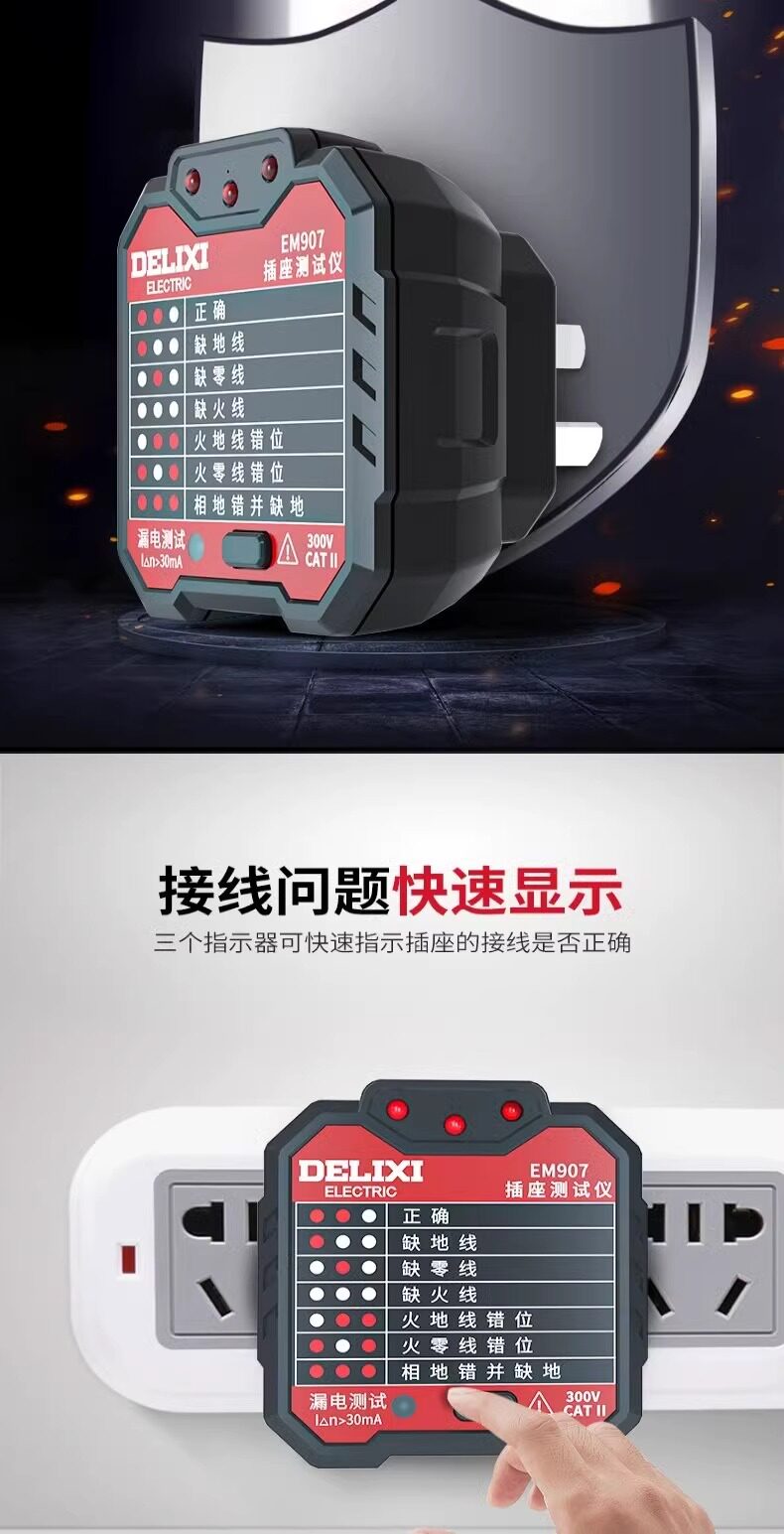 Delixi Electrical Socket Detector Power Supply Polarity Phase Fire Zero Ground Wire Test Electroscope Plug Tool