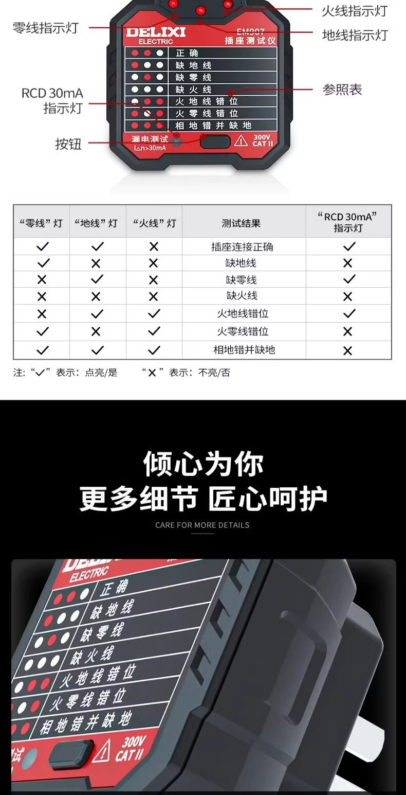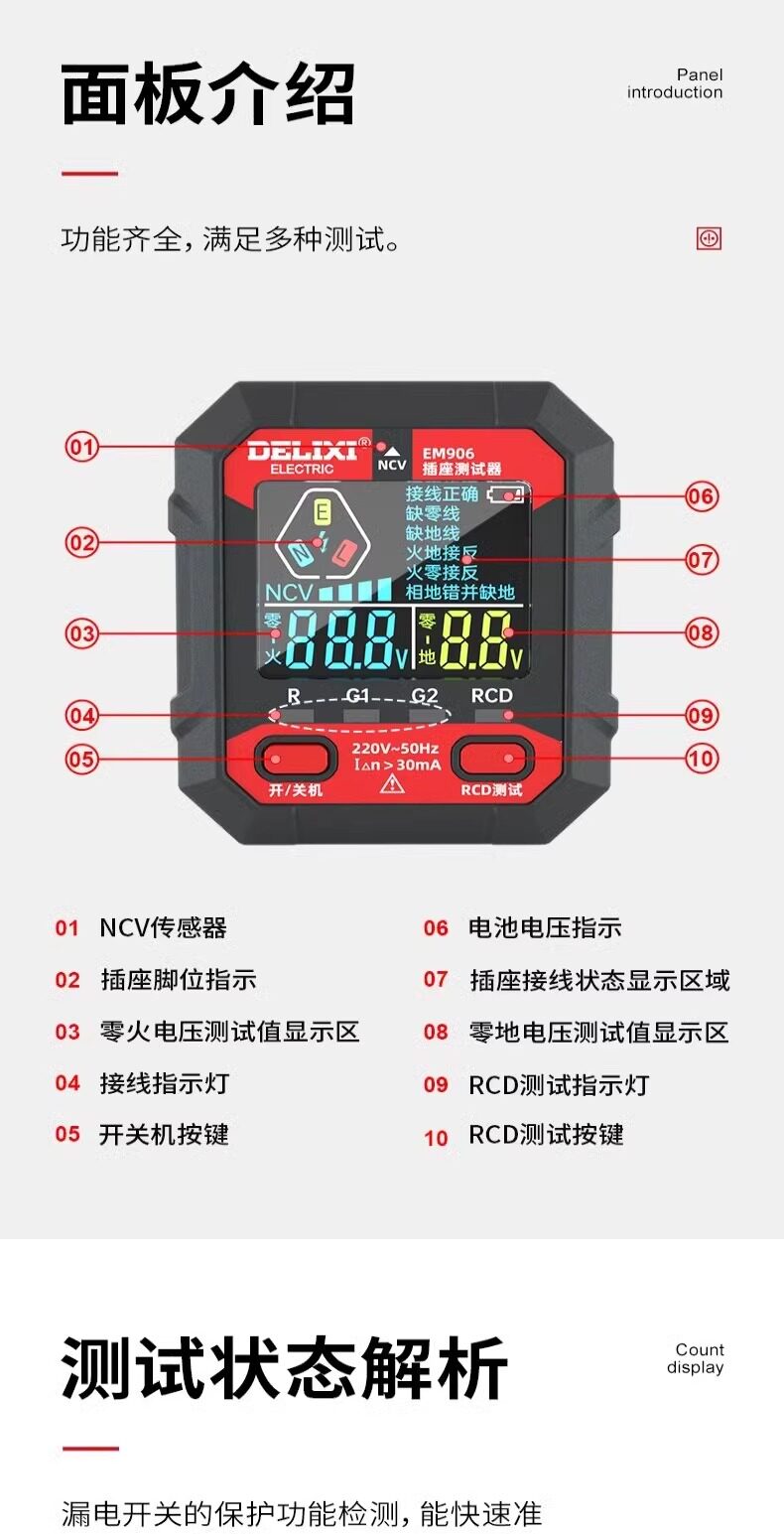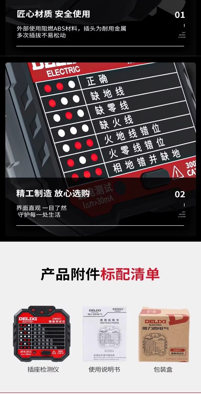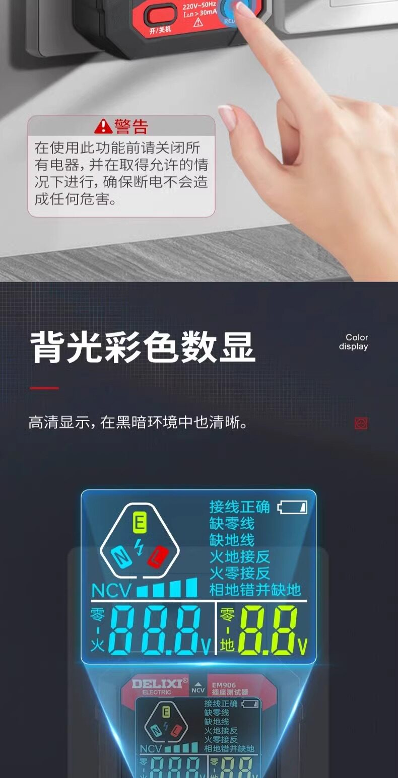 Delixi Electrical Socket Detector Power Supply Polarity Phase Fire Zero Ground Wire Test Electroscope Plug Tool