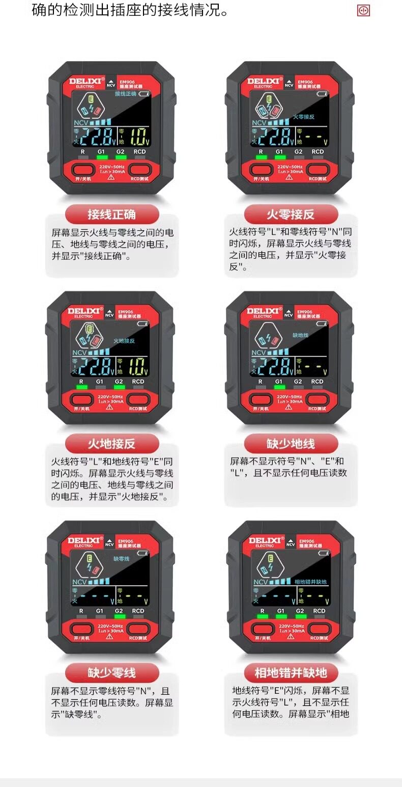 Color Classification 220V Digital Display Multi-Function Power Socket Tester Em906,220V Multifunctional Power Socket Tester Em907,Multifunctional Power Polarity Detector Em908,Power Polarity Detector + Electric Test Pen,Power Polarity Detector + Digital Display Test Pen,Power Polarity Detector + Non-Contact Electric Test Pen