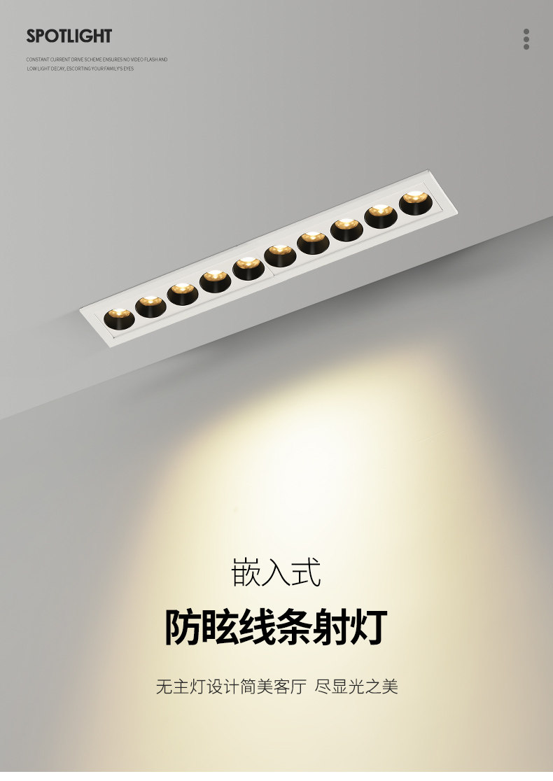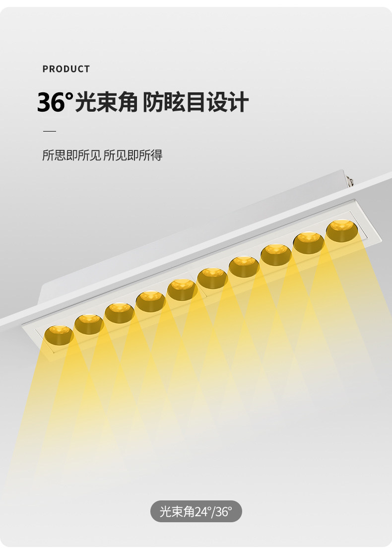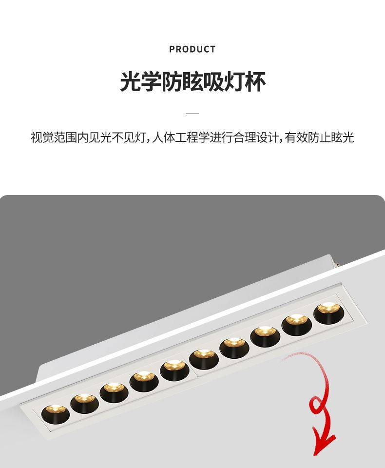 Grille Light Embedded Led Strip Light Anti-Glare Spotlight Five-Head 10-Light Home Use Living Room Corridor Background Without Main Light