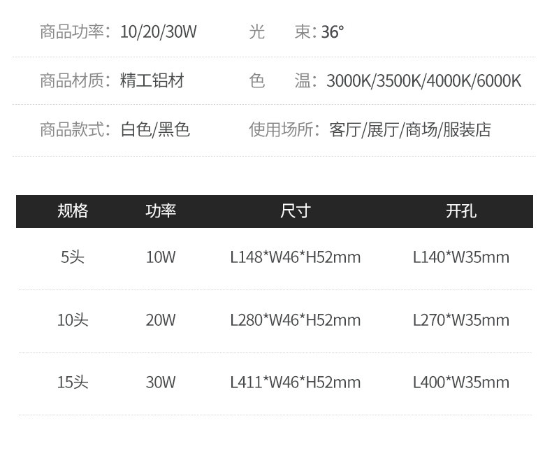 Color Classification White + Black - Anti-Glare 5 Heads - 10W White Light - 6000K,White + Black - Anti-Glare 5 Heads - 10W Neutral Light - 4000K,White + Black-Anti-Glare 5 Heads-10W-3500K,White + Black - Anti-Glare 5 Heads - 10W Warm Light - 3000K,White + Black - Anti-Glare 10 Heads - 20W White Light - 6000K,White + Black - Anti-Glare 10 Heads - 20W Neutral Light - 4000K,White + Black-Anti-Glare 10 Heads-20W-3500K,White + Black - Anti-Glare 10 Heads - 20W Warm Light - 3000K,White + Black - Anti-Glare 15 Heads - 30W White Light - 6000K,White + Black - Anti-Glare 15 Heads - 30W Neutral Light - 4000K,White + Black-Anti-Glare 15 Heads-30W-3500K,White + Black - Anti-Glare 15 Heads - 30W Warm Light - 3000K,Black Anti-Glare 5 Heads-10W White Light-6000K,Black Anti-Glare 5 Heads-10W Neutral Light-4000K,Black Anti-Glare 5 Heads-10W-3500K,Black Anti-Glare 5 Heads-10W Warm Light-3000K,Black Anti-Glare 10 Heads-20W White Light-6000K,Black Anti-Glare 10 Heads-20W Neutral Light-4000K,Black Anti-Glare 10 Heads-20W-3500K,Black Anti-Glare 10 Heads-20W Warm Light-3000K,Black Anti-Glare 15 Heads-30W White Light-6000K,Black Anti-Glare 15 Heads-30W Neutral Light-4000K,Black Anti-Glare 15 Heads-30W-3500K,Black Anti-Glare 15 Heads-30W Warm Light-3000K