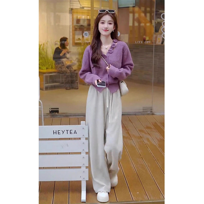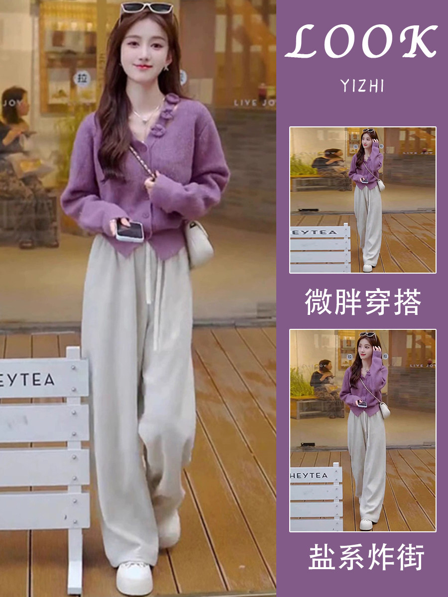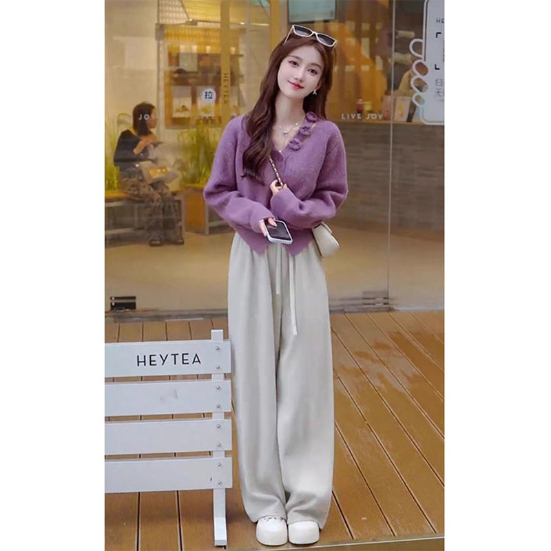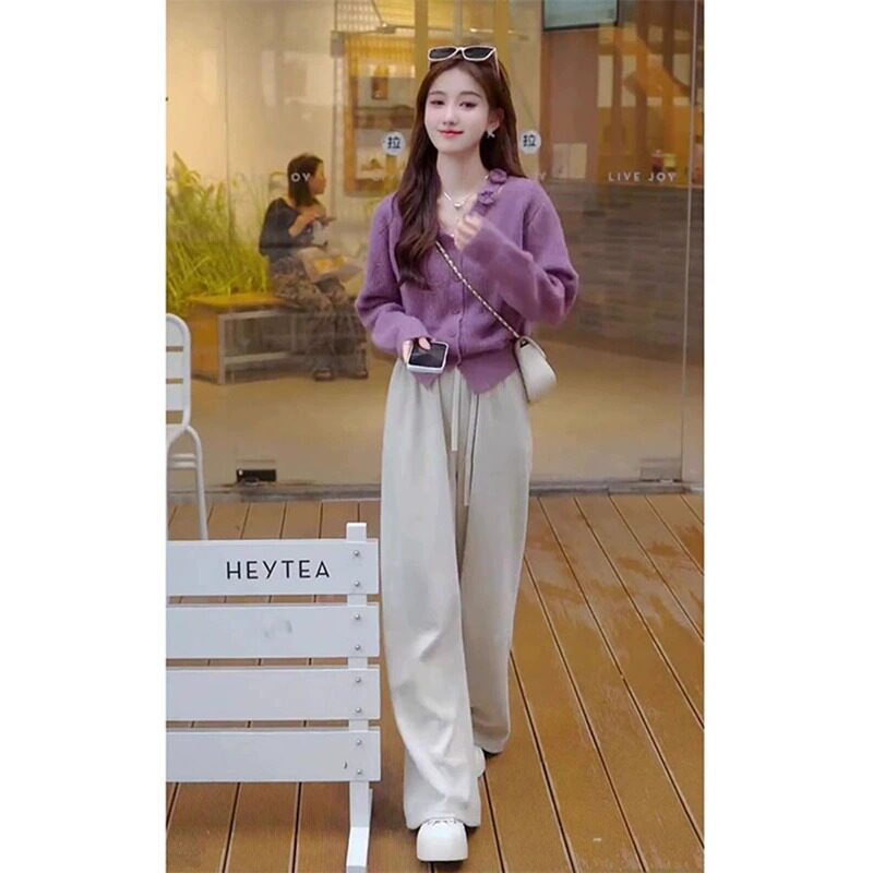 Sort by color Purple sweater,Apricot casual pants,Purple sweater + apricot casual pants