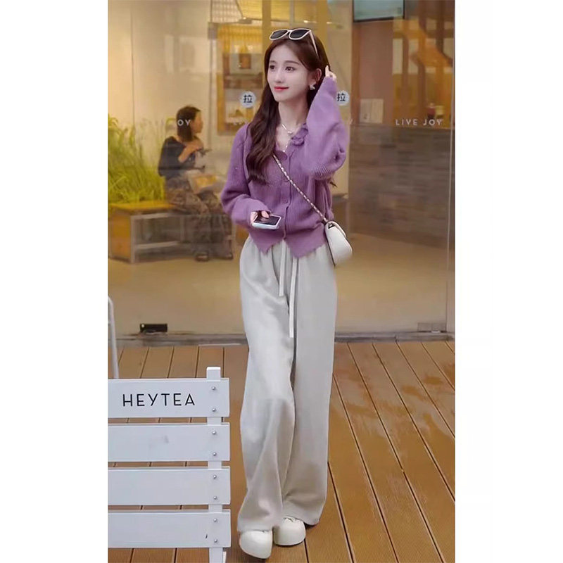 Spring 2025 complete set of back-to-school outfits, elegant and decent Korean style, relaxed and high-end, unique and beautiful knitted suit