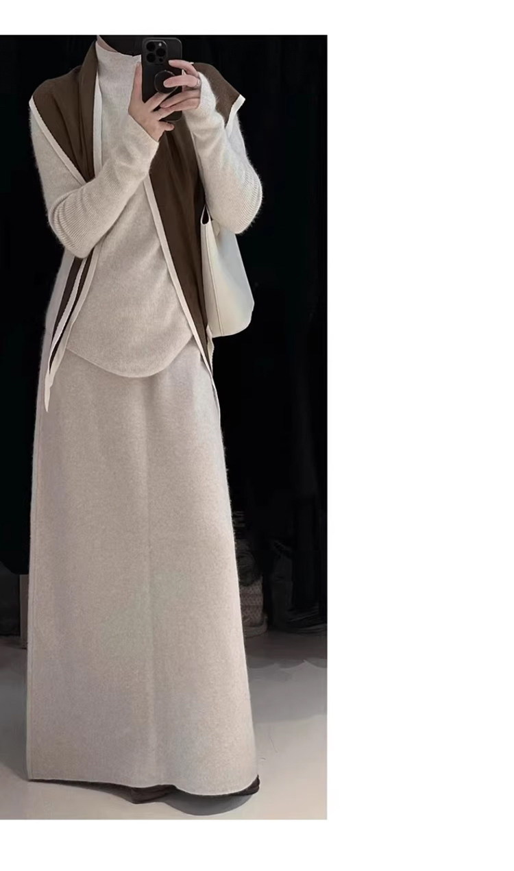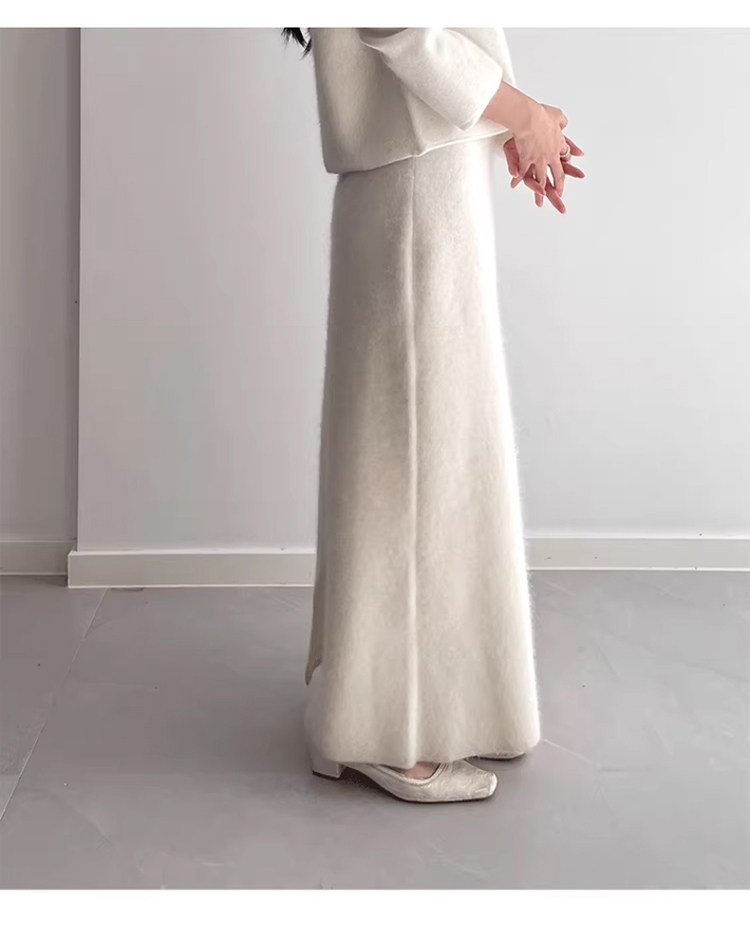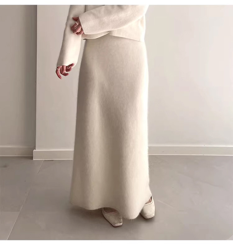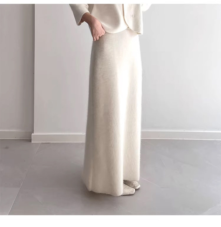 White Wool A-Line Knitted Skirt for Women, Autumn and Winter, High-Waisted, Slimming, Thickened, Hip-Hugging Skirt, Elegant and Gentle Long Skirt