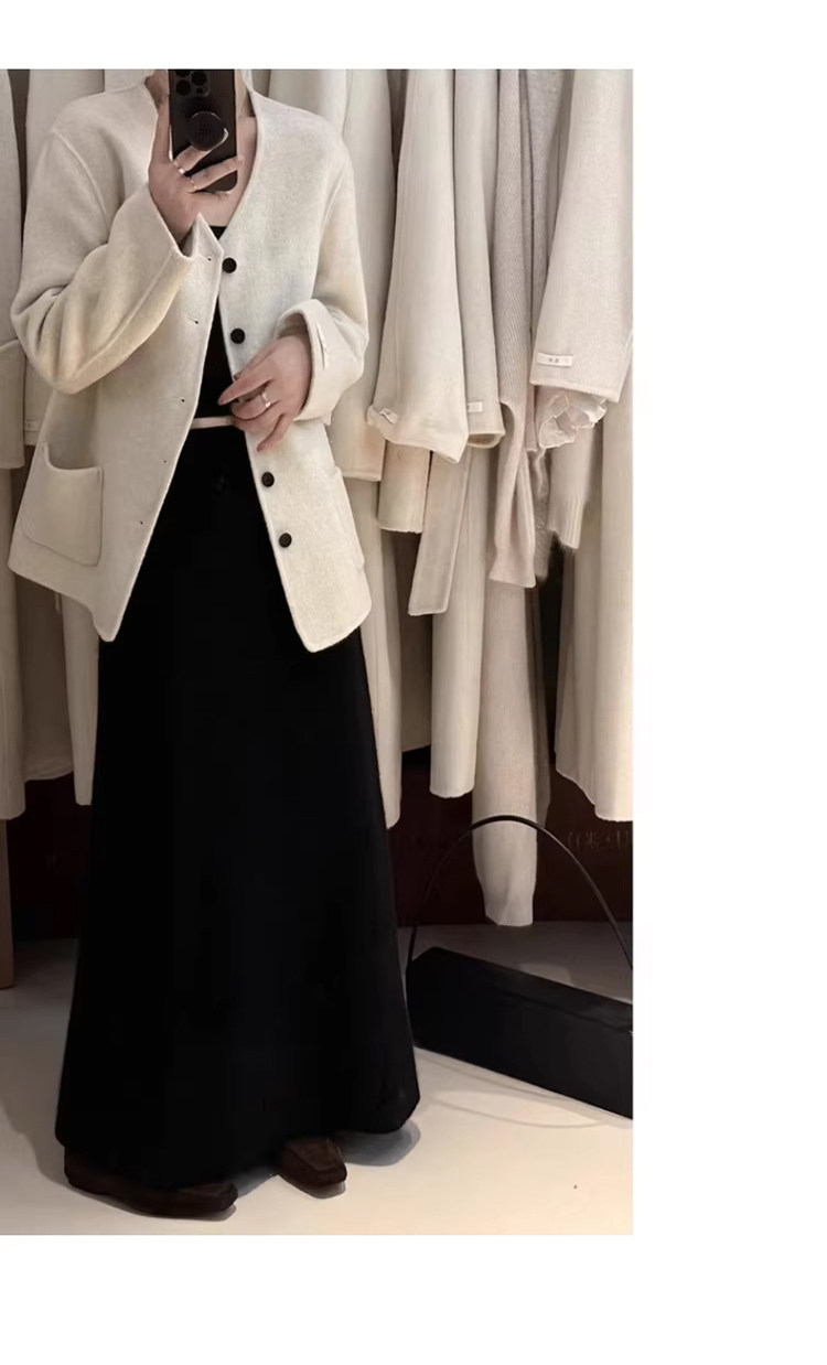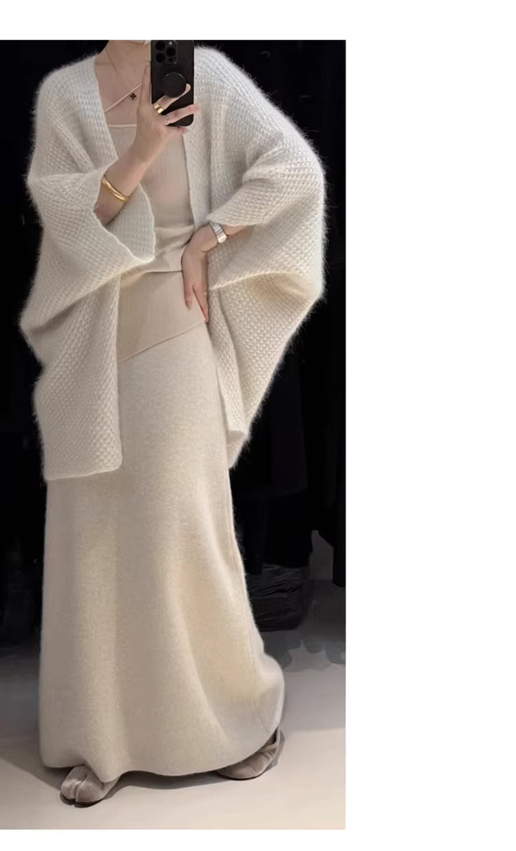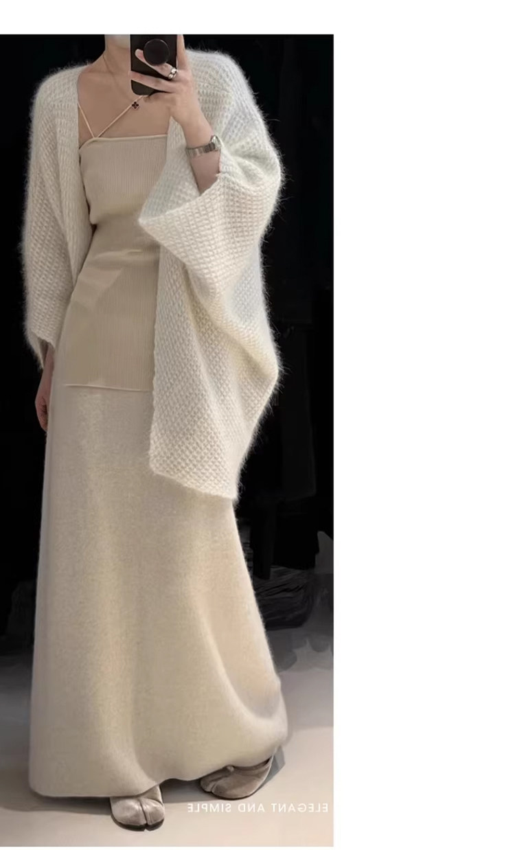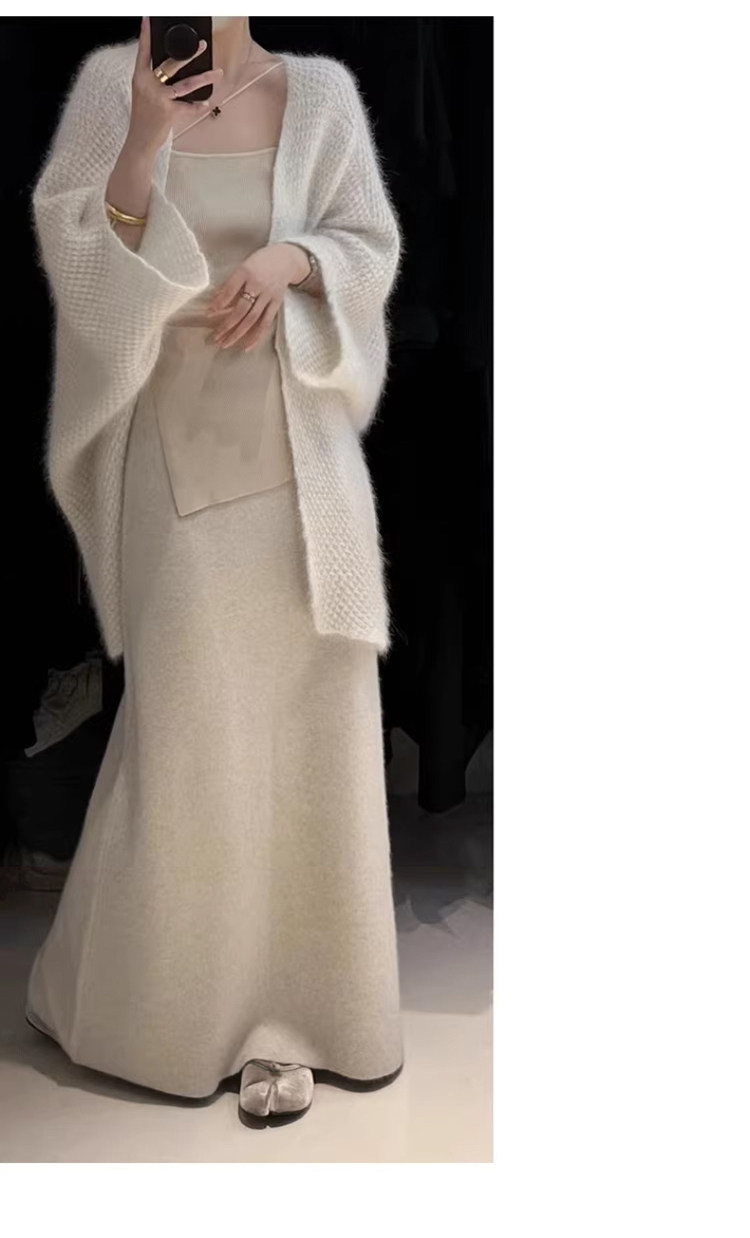 White Wool A-Line Knitted Skirt for Women, Autumn and Winter, High-Waisted, Slimming, Thickened, Hip-Hugging Skirt, Elegant and Gentle Long Skirt