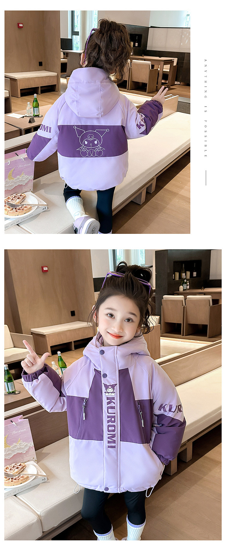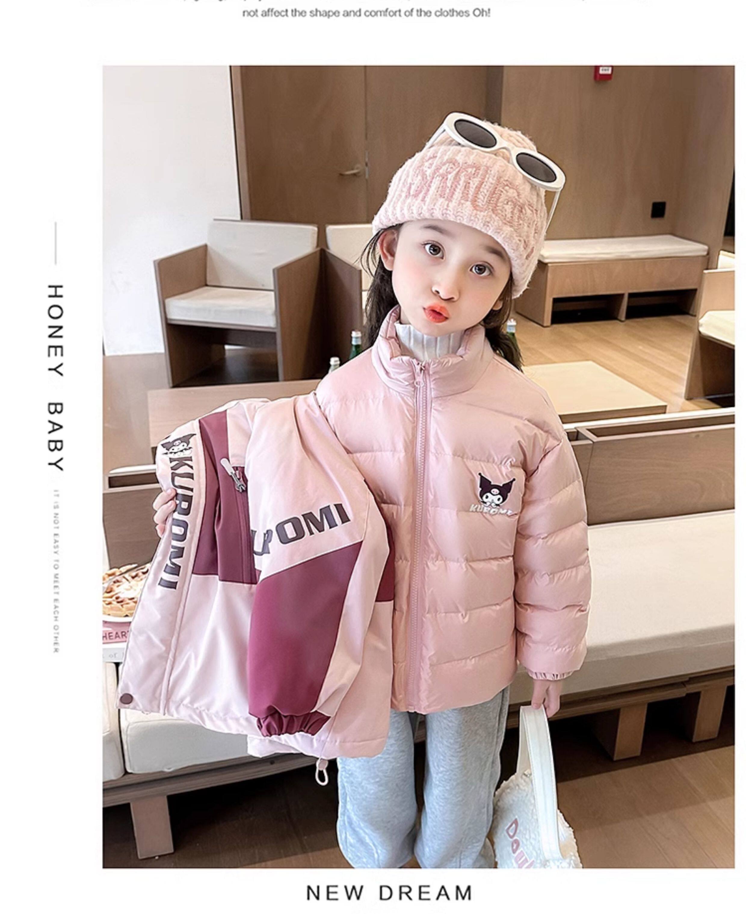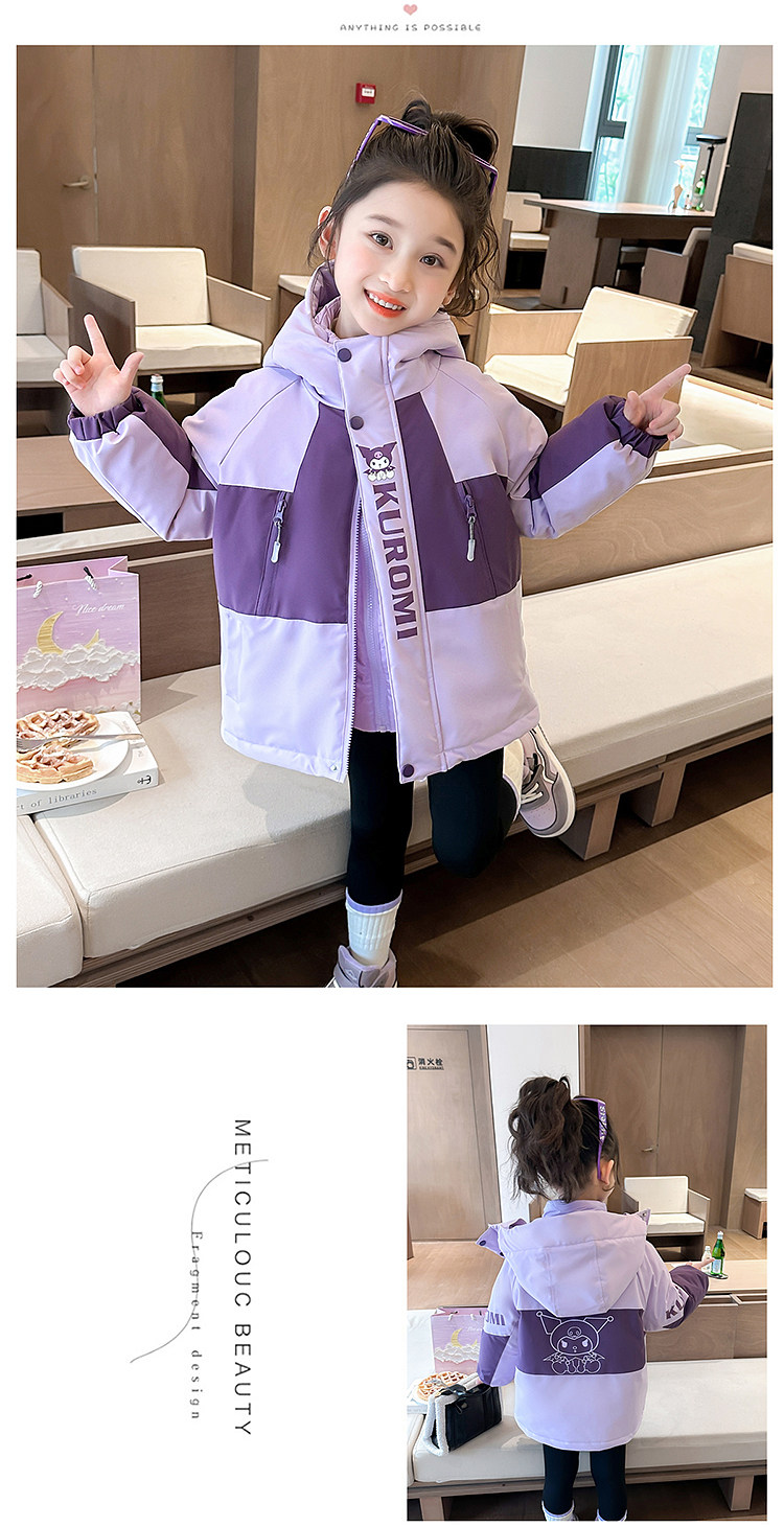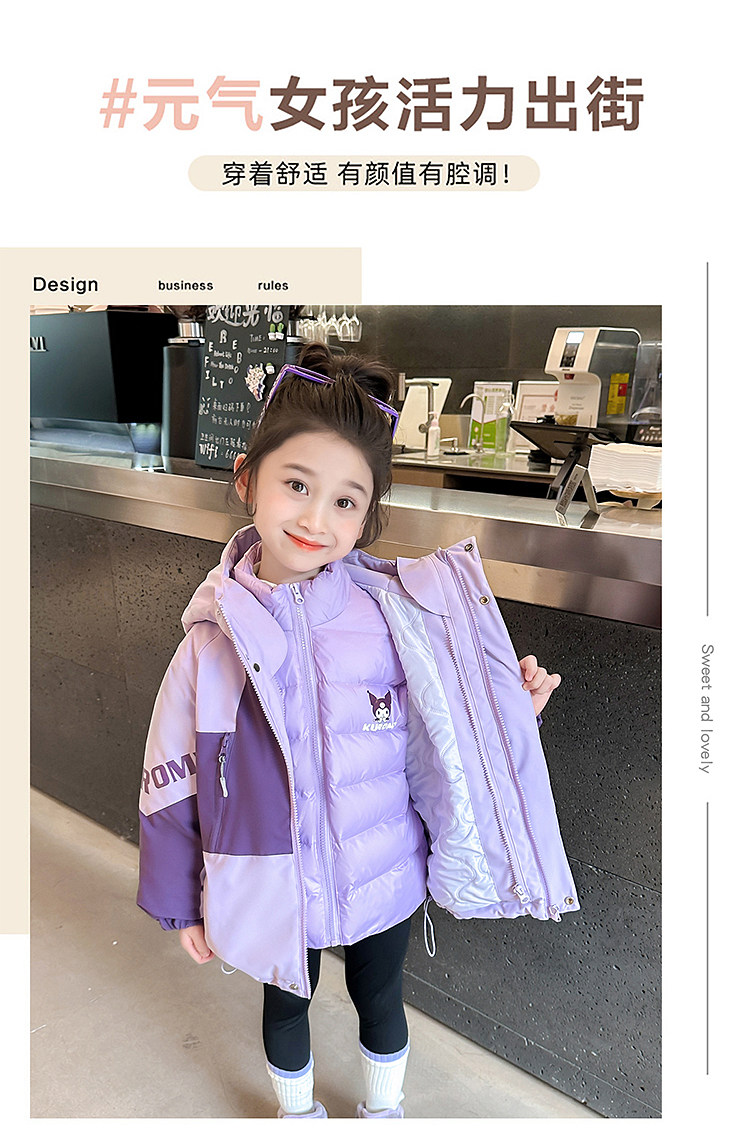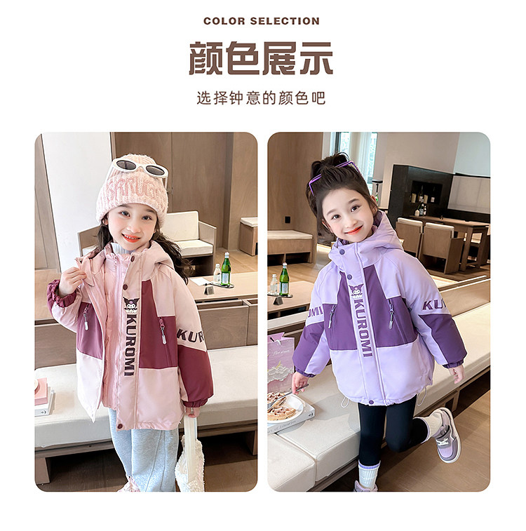Kuromi Girls' 3-in-1 Detachable down Jacket Winter Children's Thickened White Duck down Coat